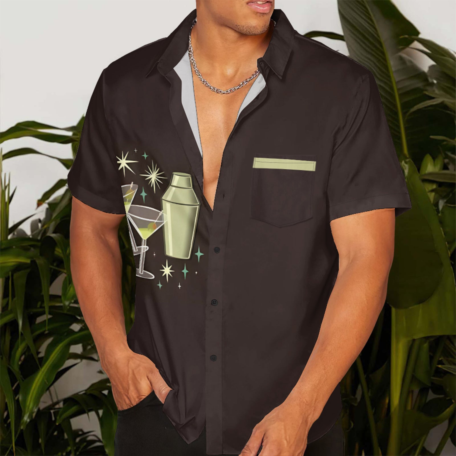 Vintage 50s Cool Two Tone Bowling Men's Breathable Hawaiian Shirt Pocket Camp Shirt