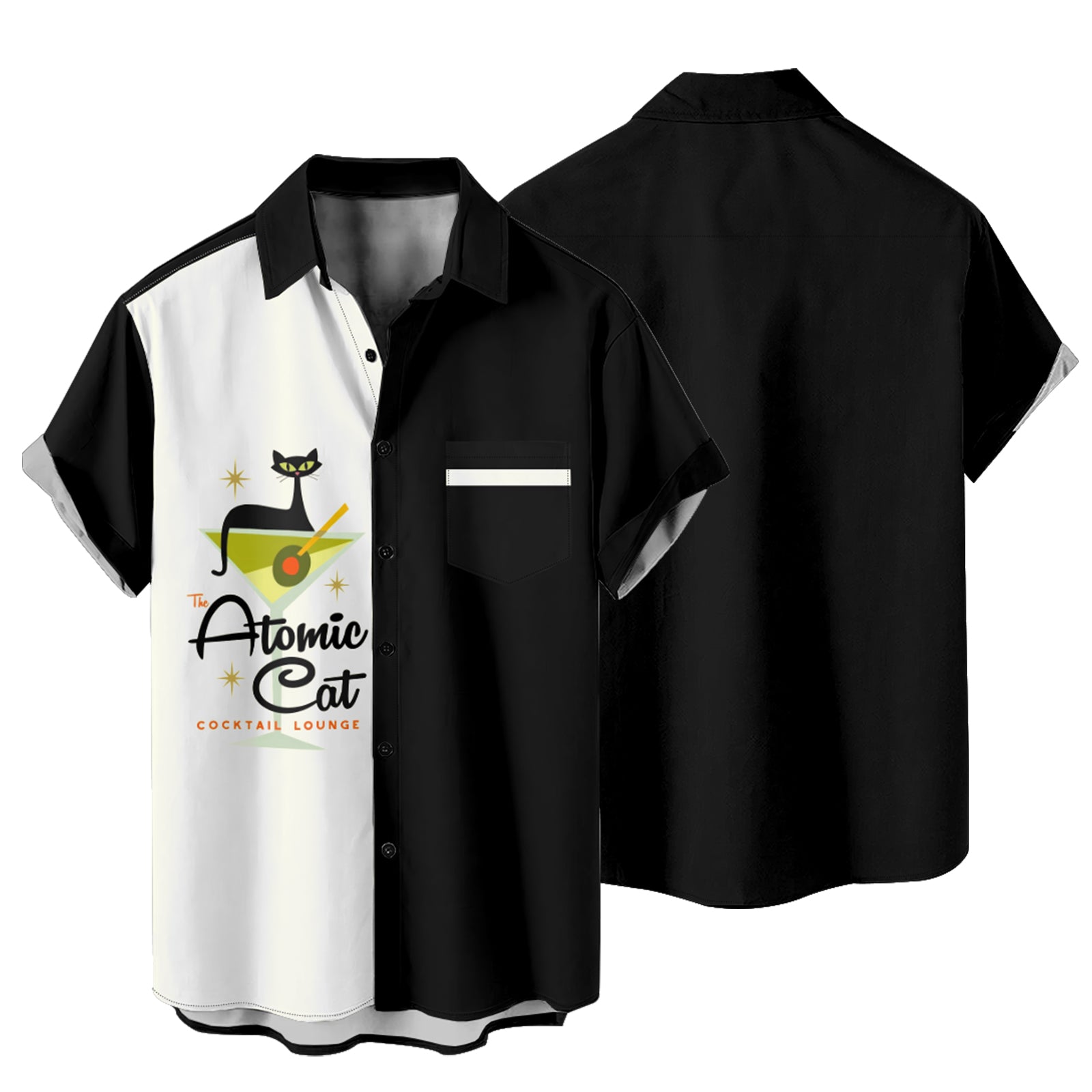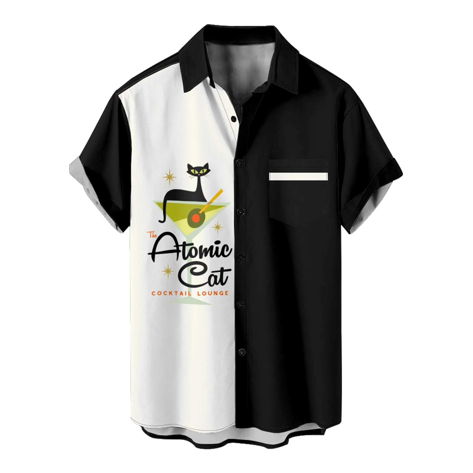 Vintage Cat 1950s Reto Art Men's Pocket Shirt Stretch Quick Dry Button Up Shirt