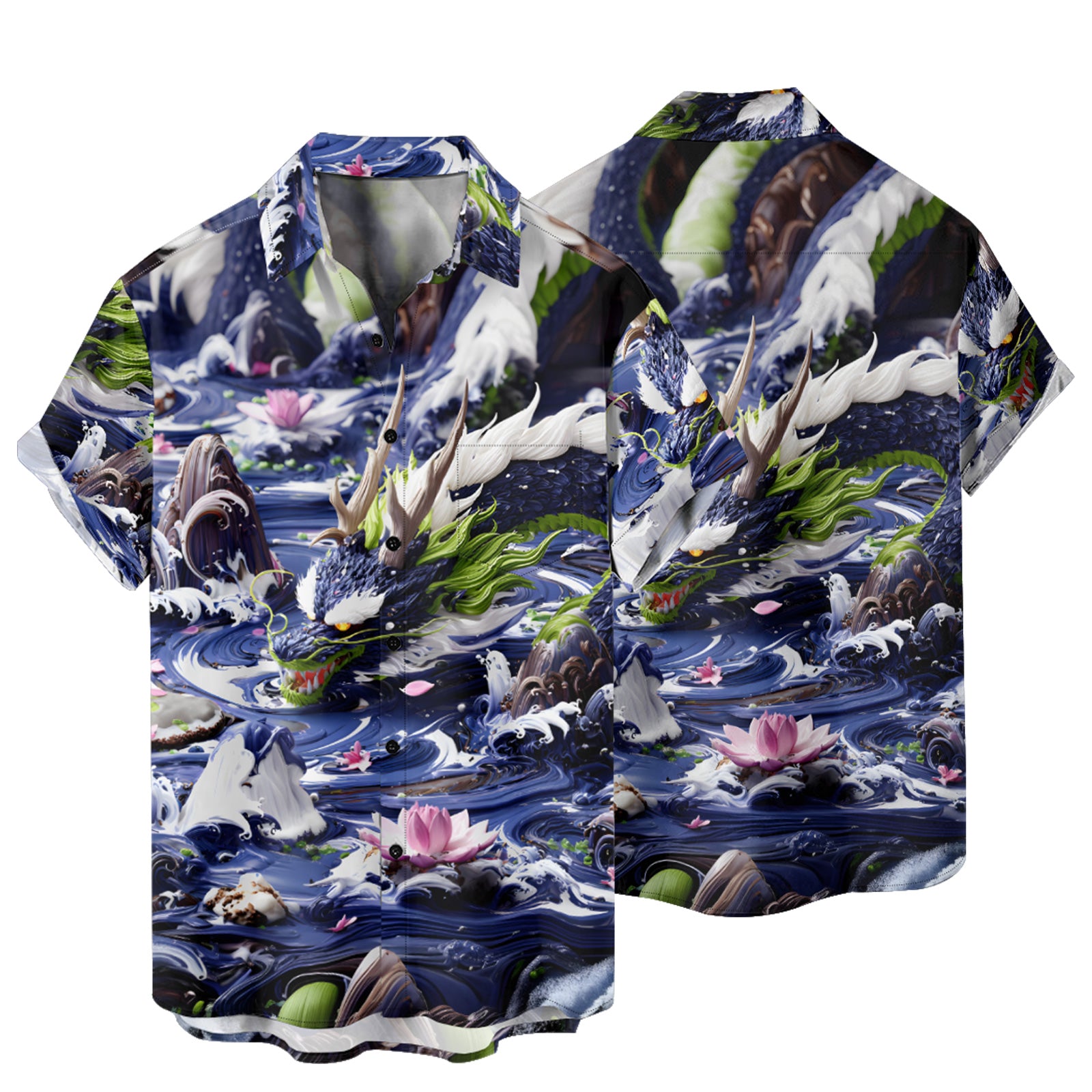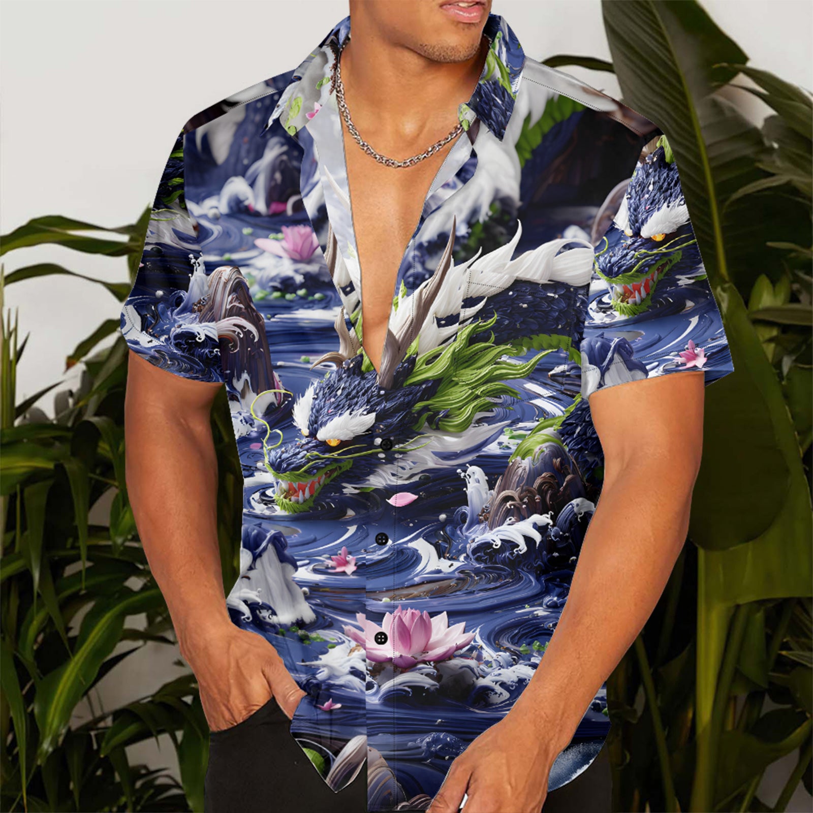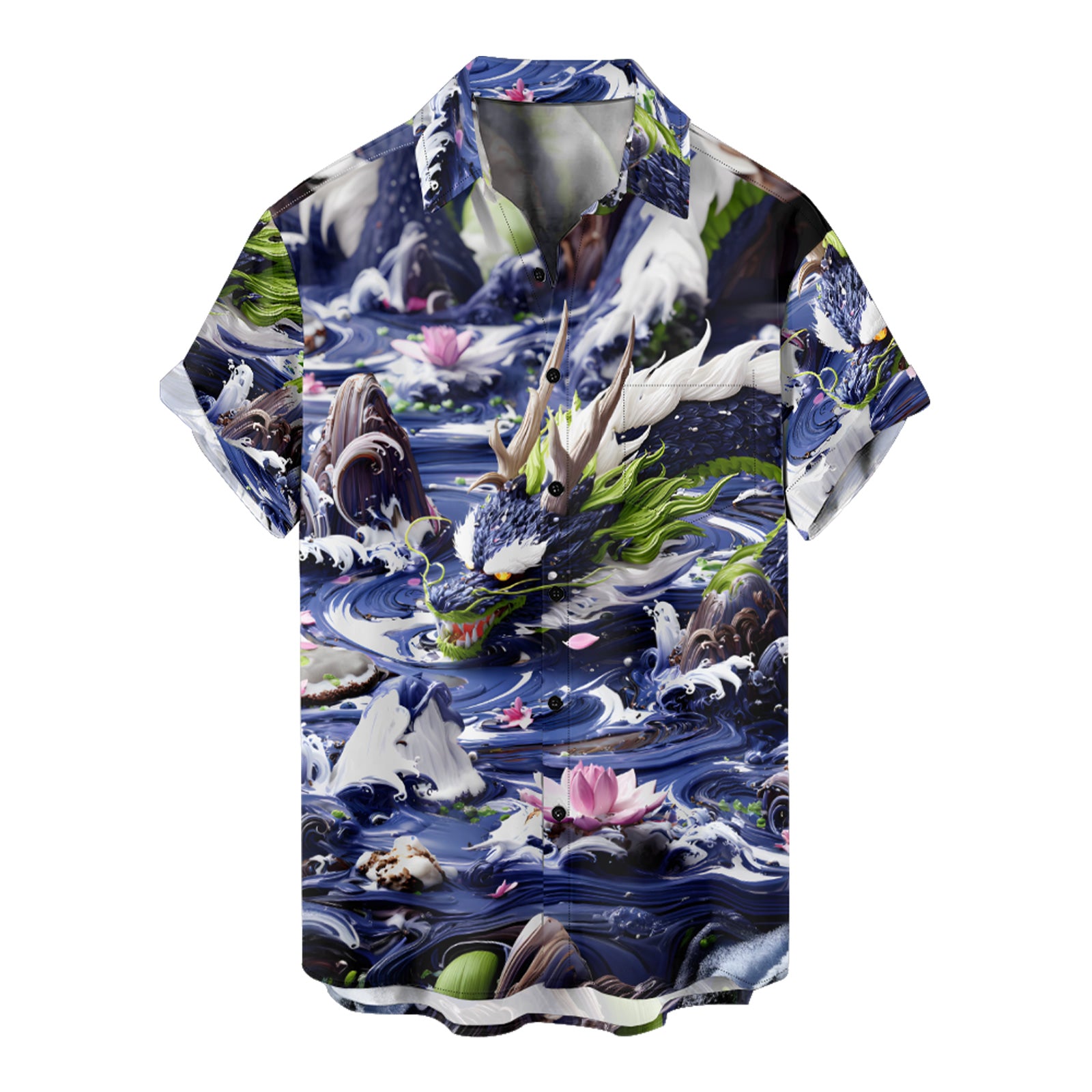 3D Model Dragon Men's Pocket Shirt Stretch Quick Dry Button Up Shirt