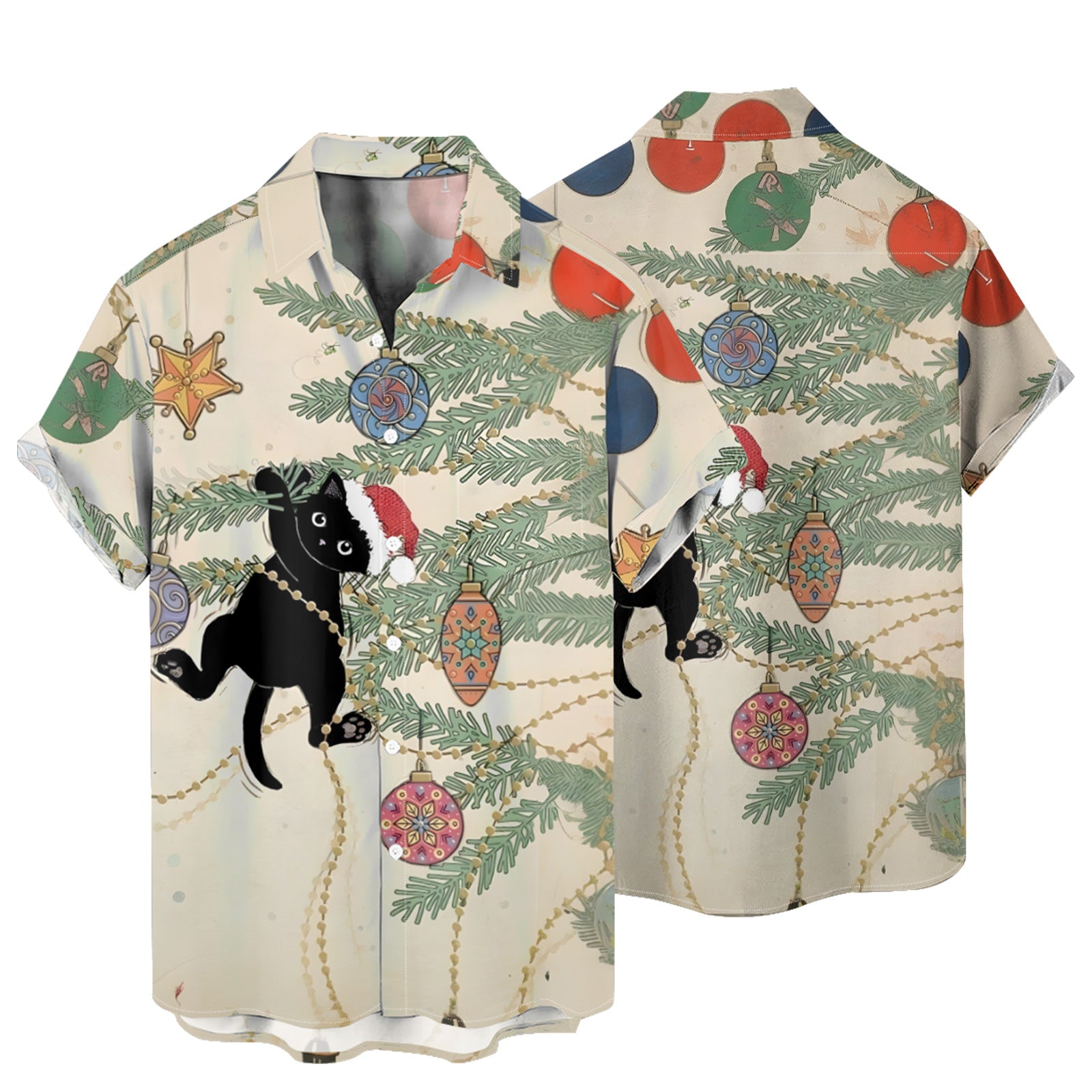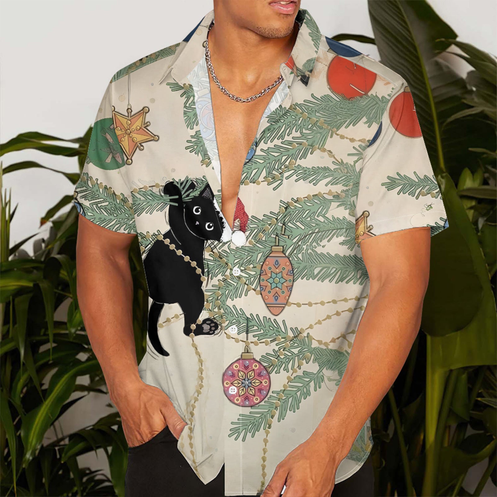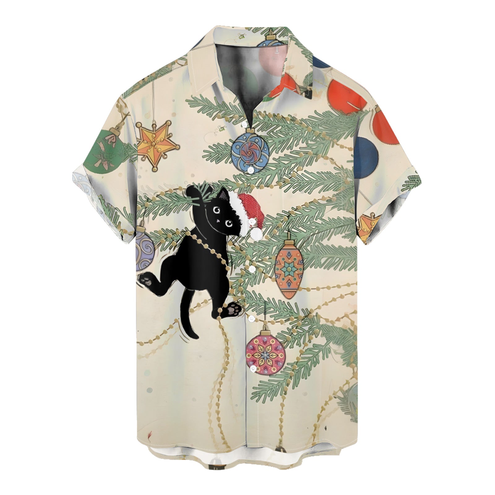 Christmas Cat and Tree Men's Pocket Shirt Stretch Quick Dry Button Up Shirt