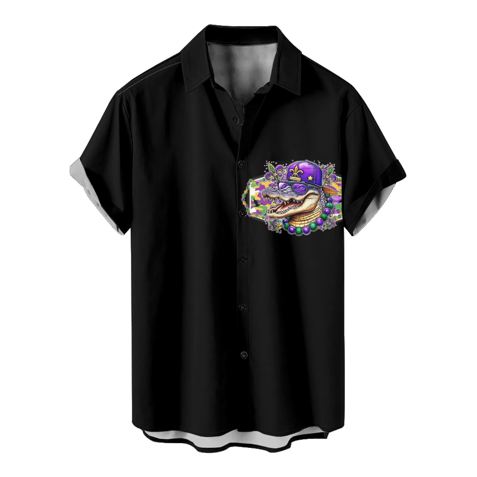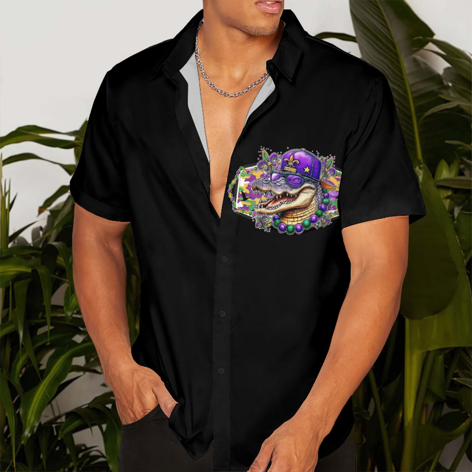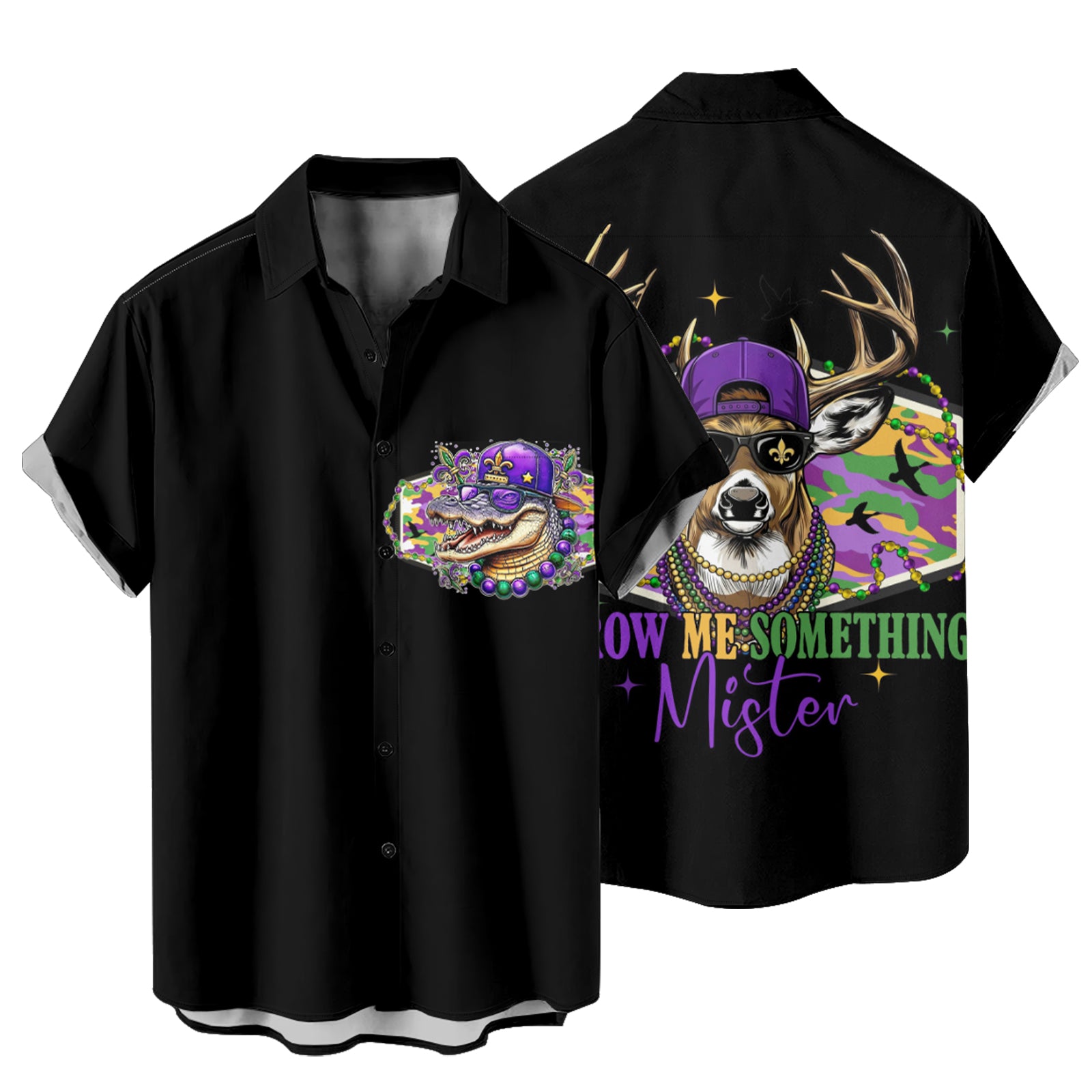Mardi Gras Alligator and Deer Men's Pocket Shirt Stretch Quick Dry Button Up Shirt