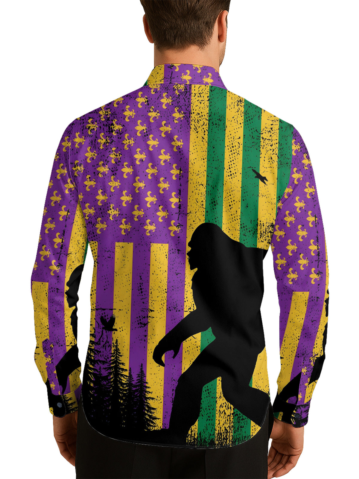 Mardi Gras Flag Bigfoot Men's Shirt Long Sleeve Button Up Shirt