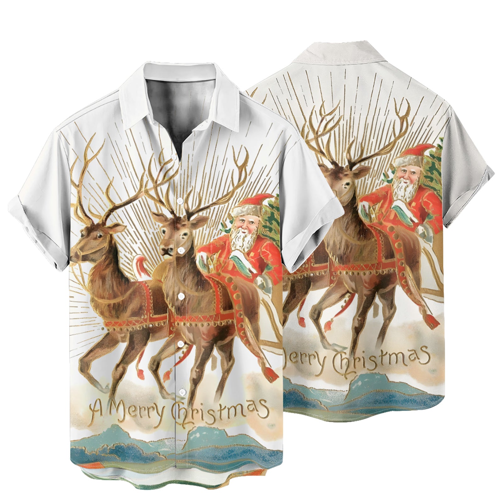 Reindeer Santa Claus Men's Pocket Shirt Stretch Quick Dry Button Up Shirt