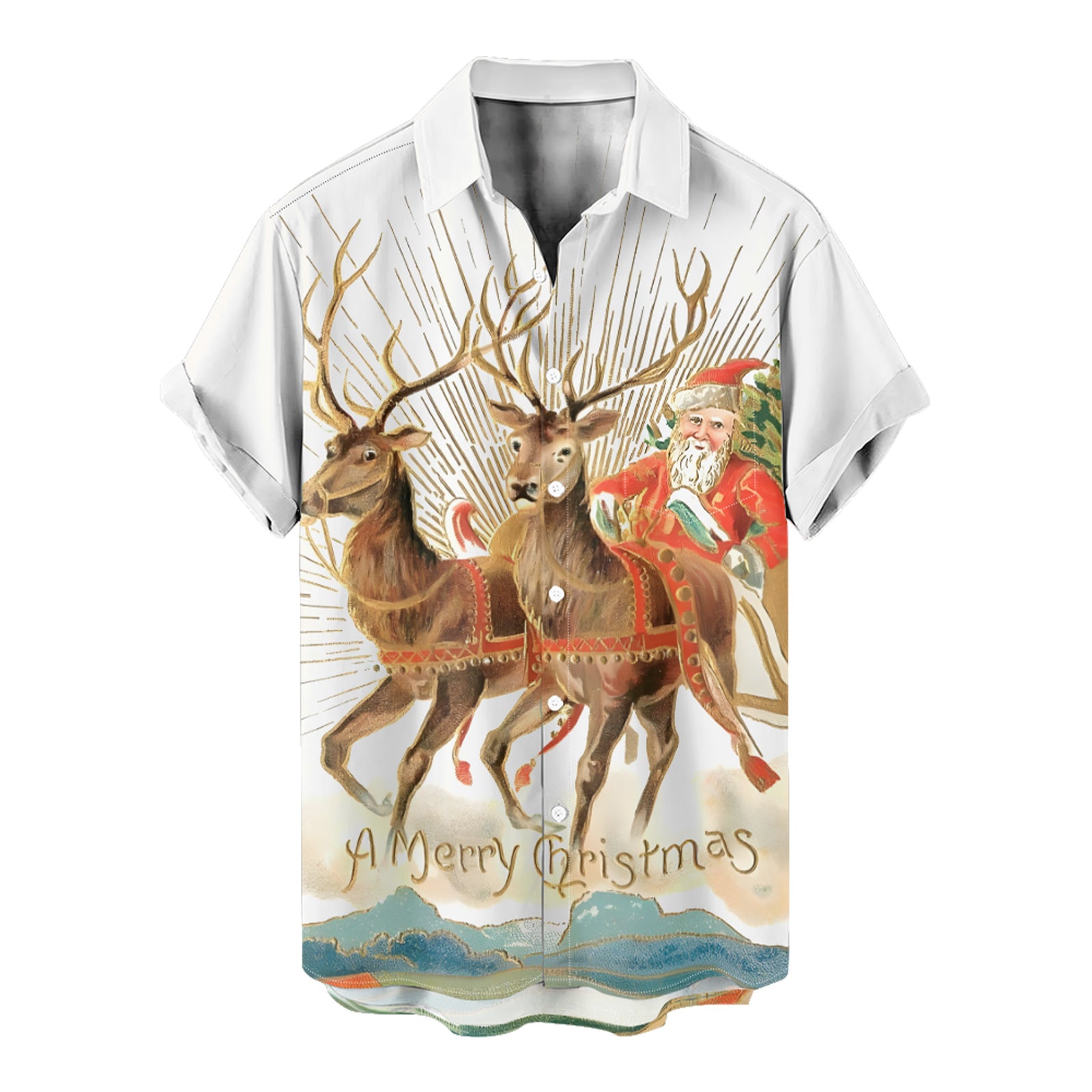 Reindeer Santa Claus Men's Shirt Long Sleeve Button Up Shirt
