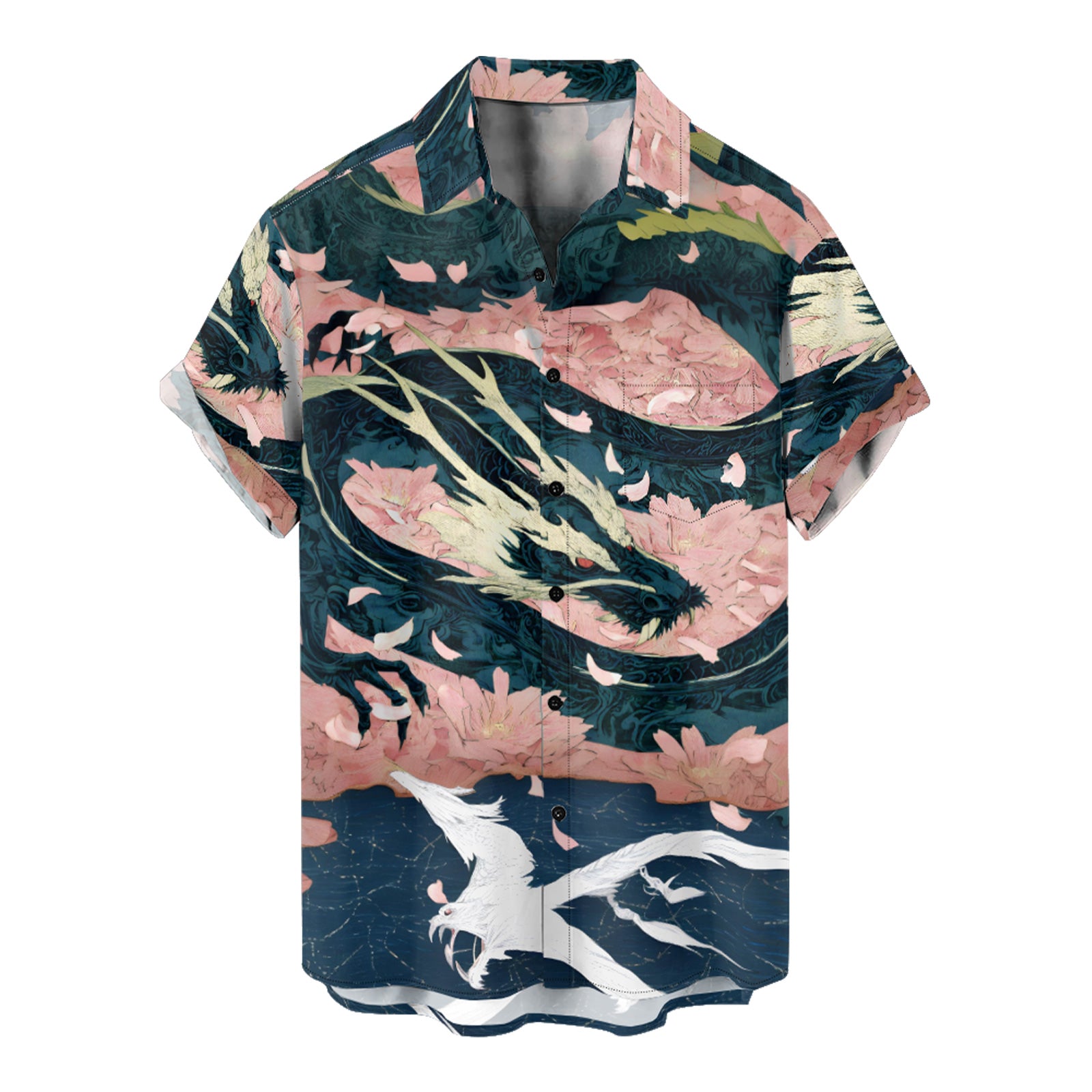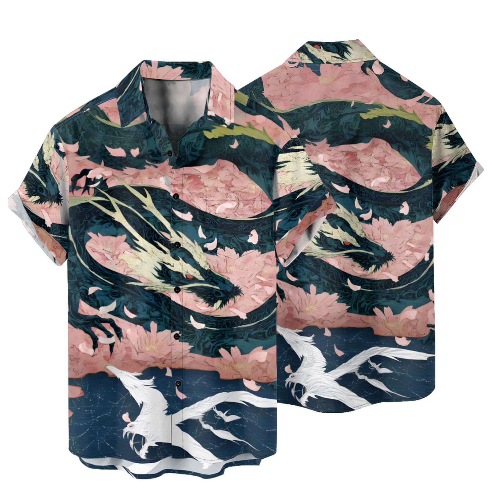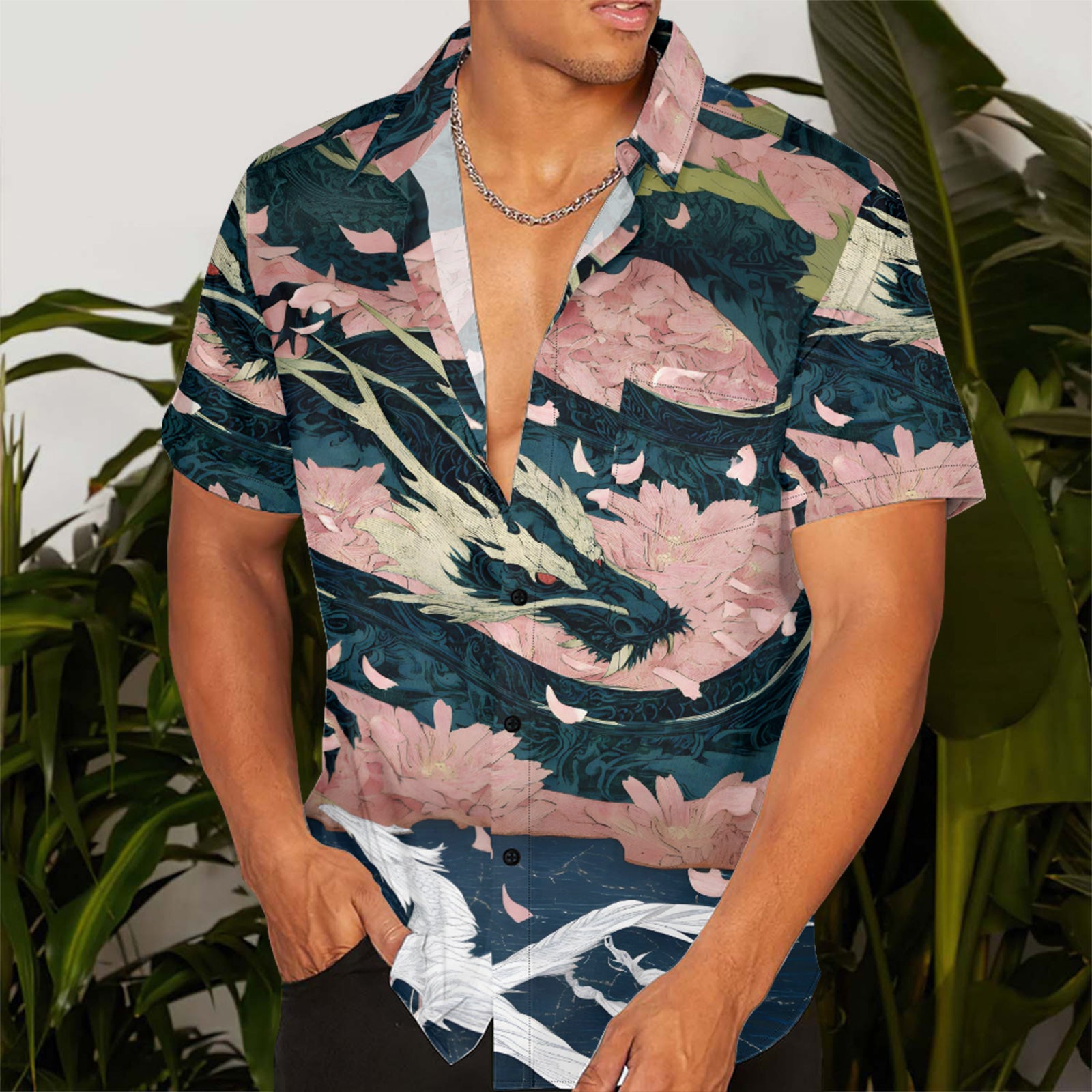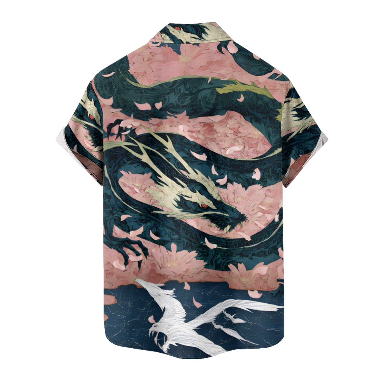 Sakura Dragon Men's Pocket Shirt Stretch Quick Dry Button Up Shirt