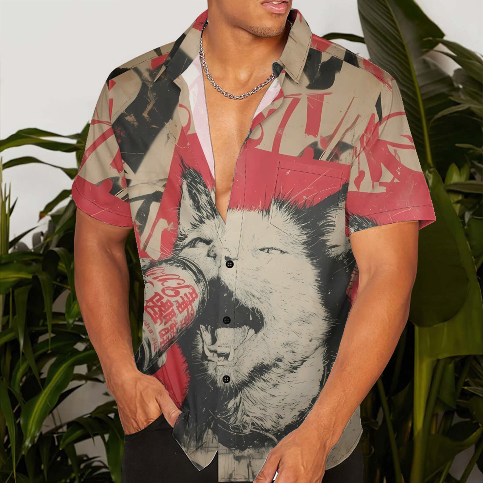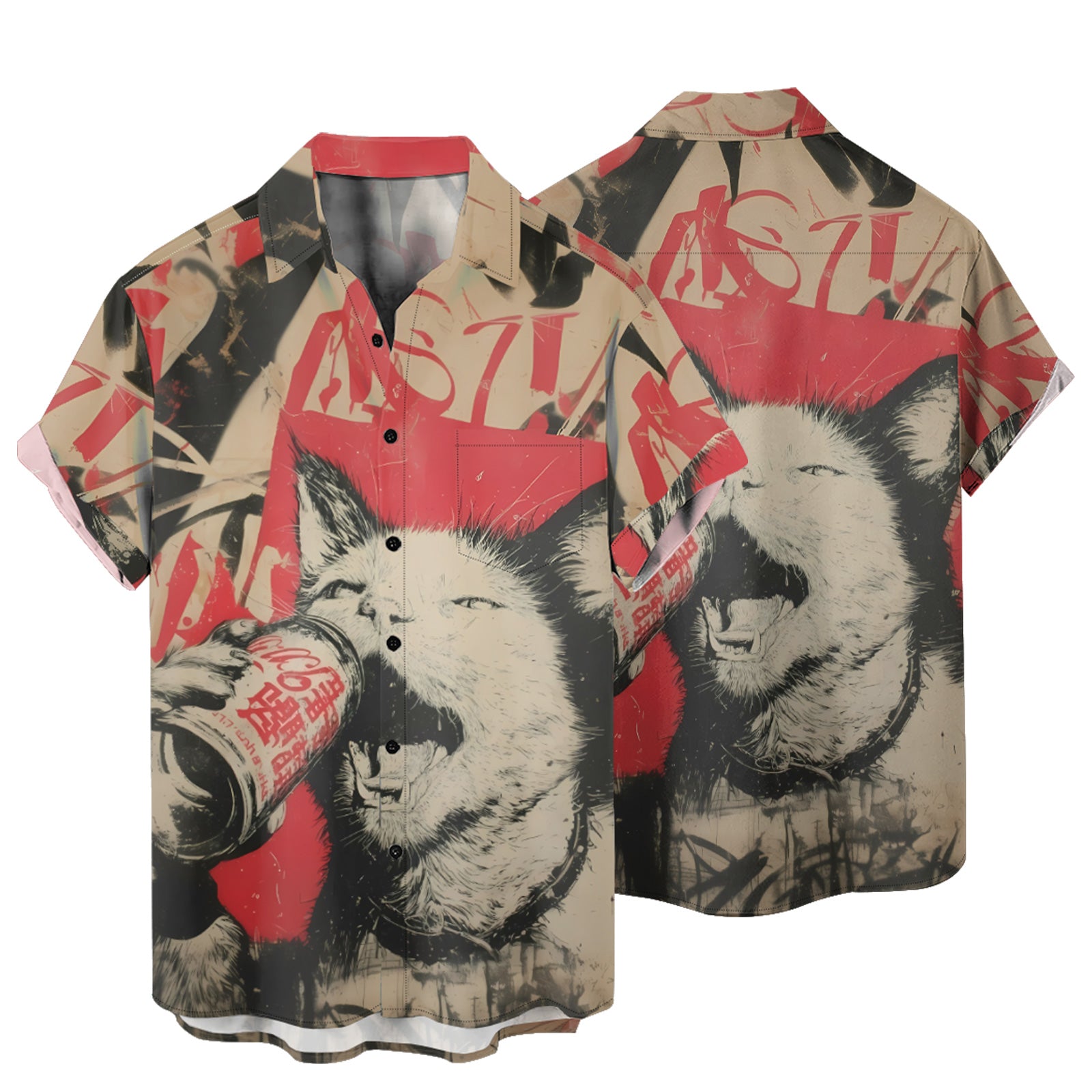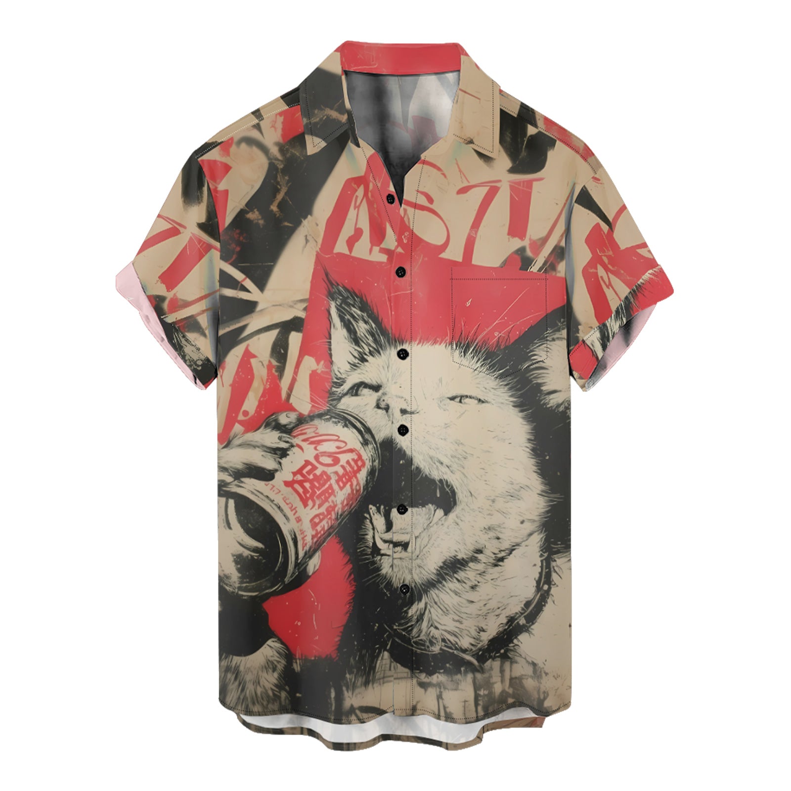 The Beer-Drinking Cat Men's Pocket Shirt Stretch Quick Dry Button Up Shirt