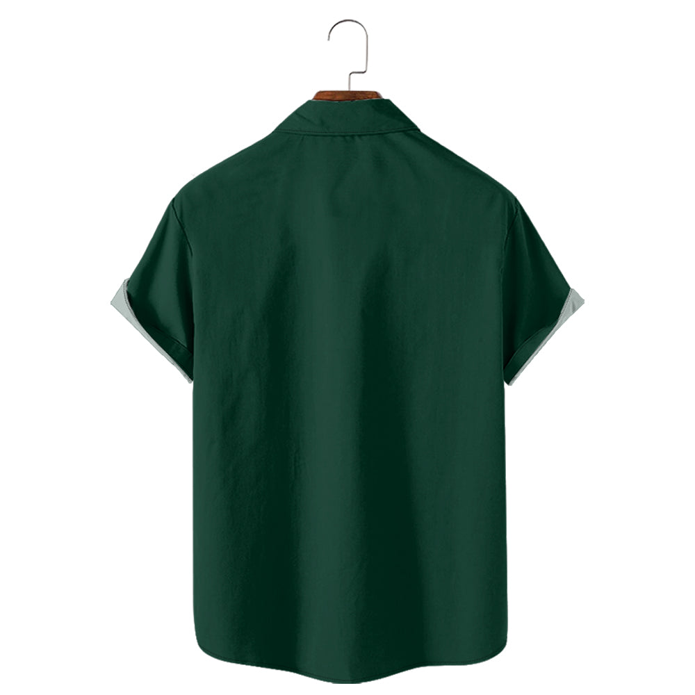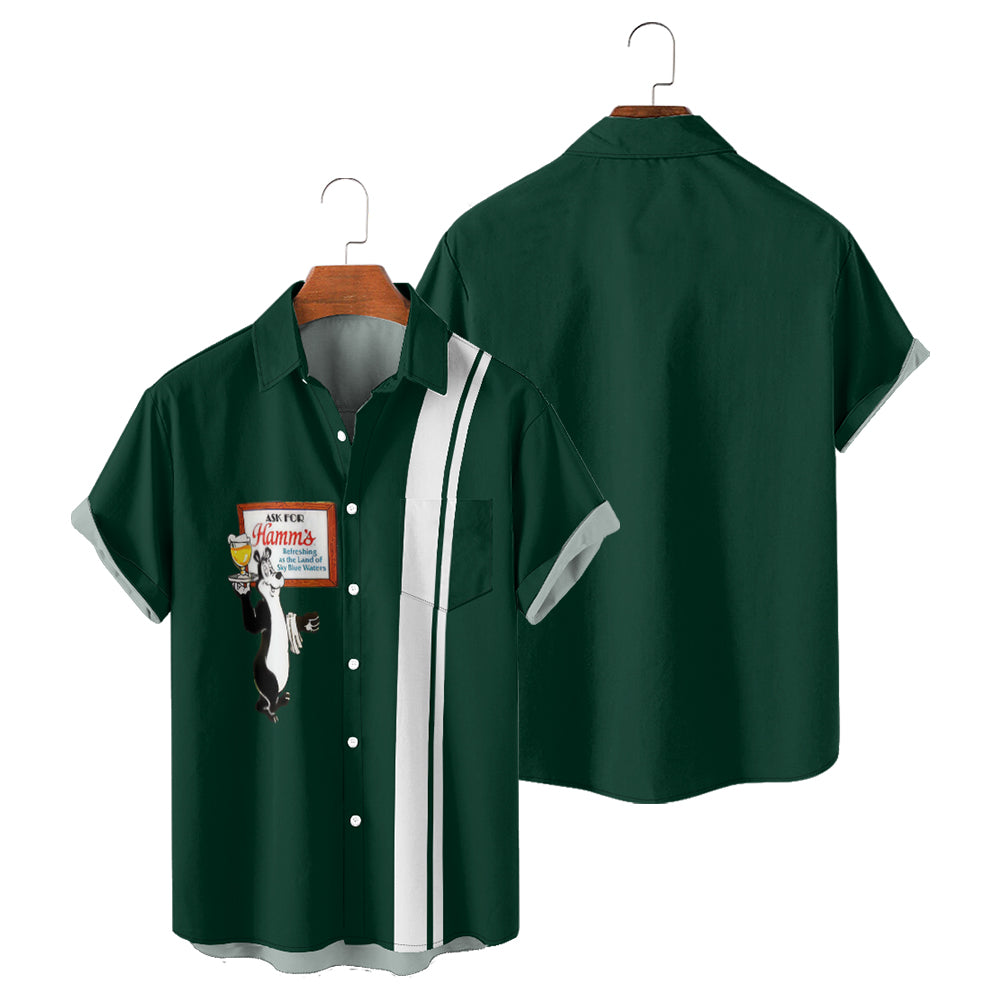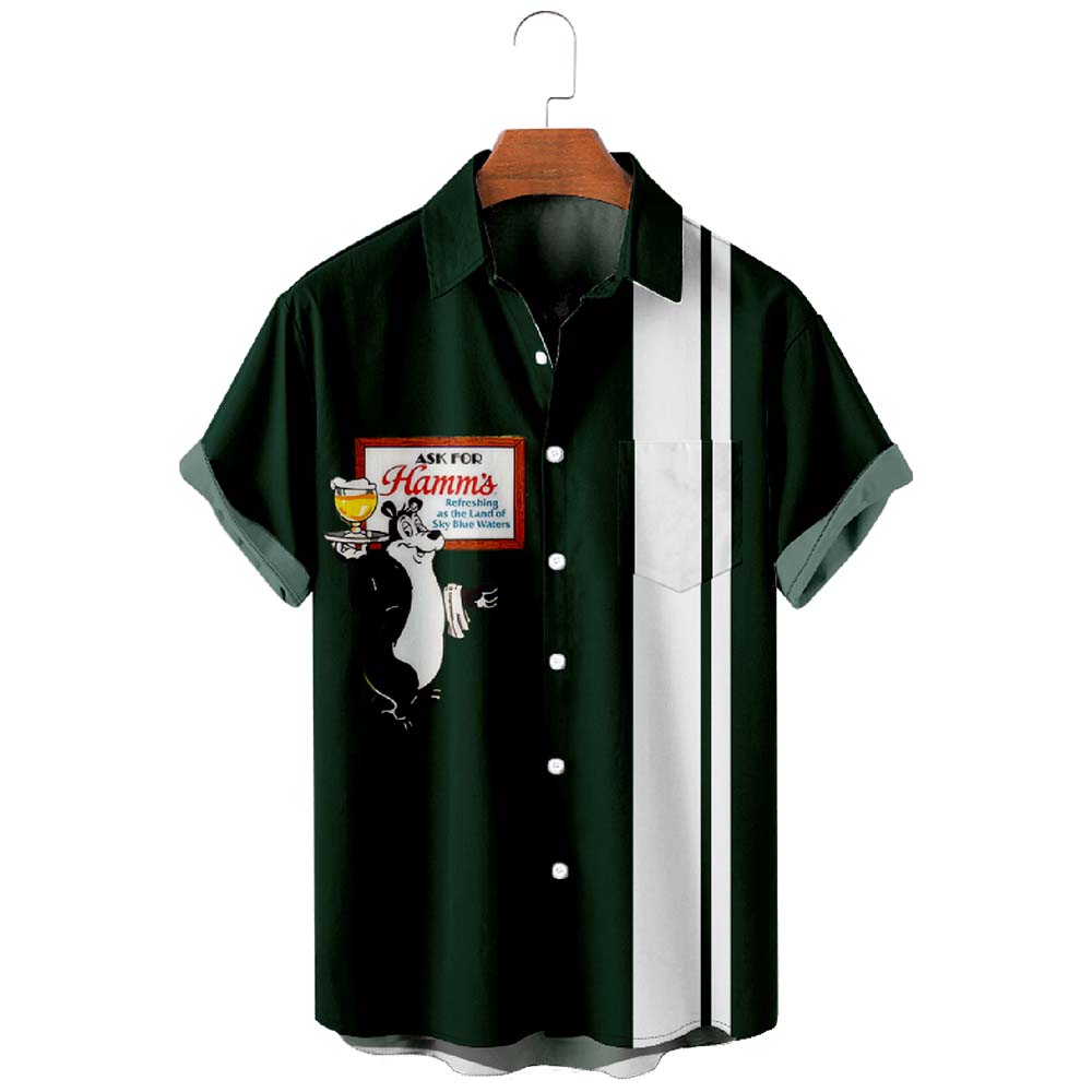 Green Beer Bear Men's Pocket Bowling Shirt Stretch Quick Dry Button Up Shirt