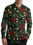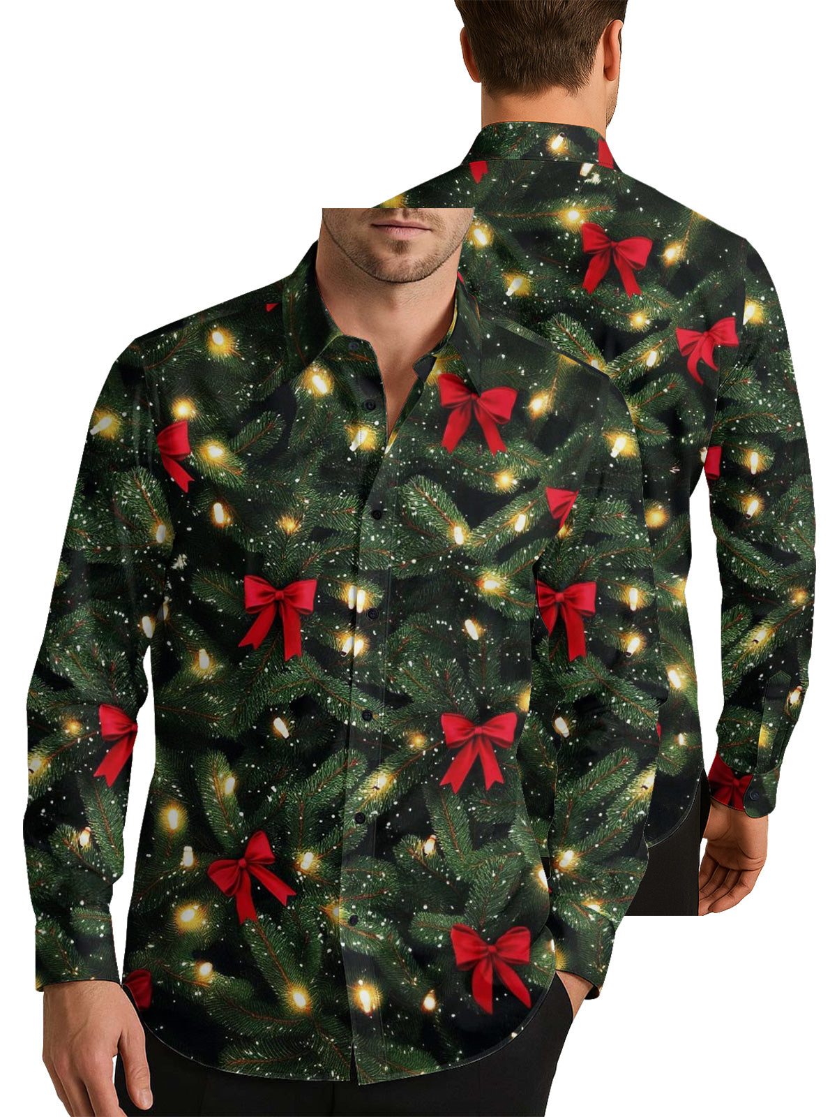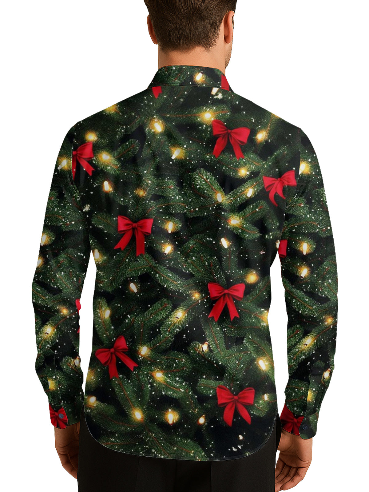 Christmas Tree Print Men's Shirt Long Sleeve Button Up Shirt