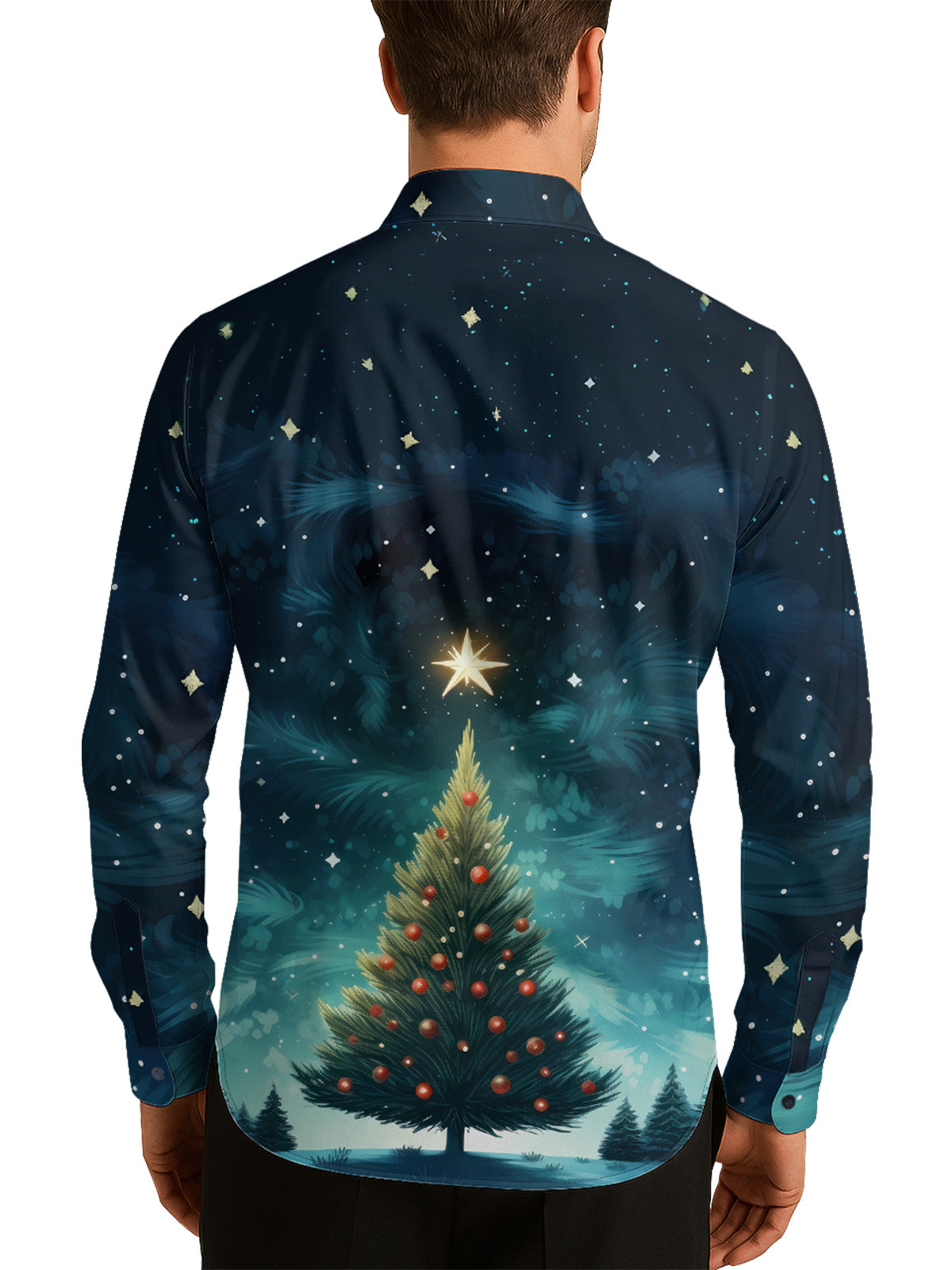 Christmas Tree Star Men's Shirt Long Sleeve Button Up Shirt