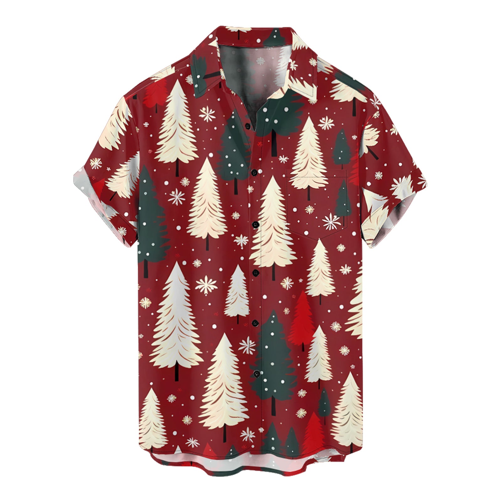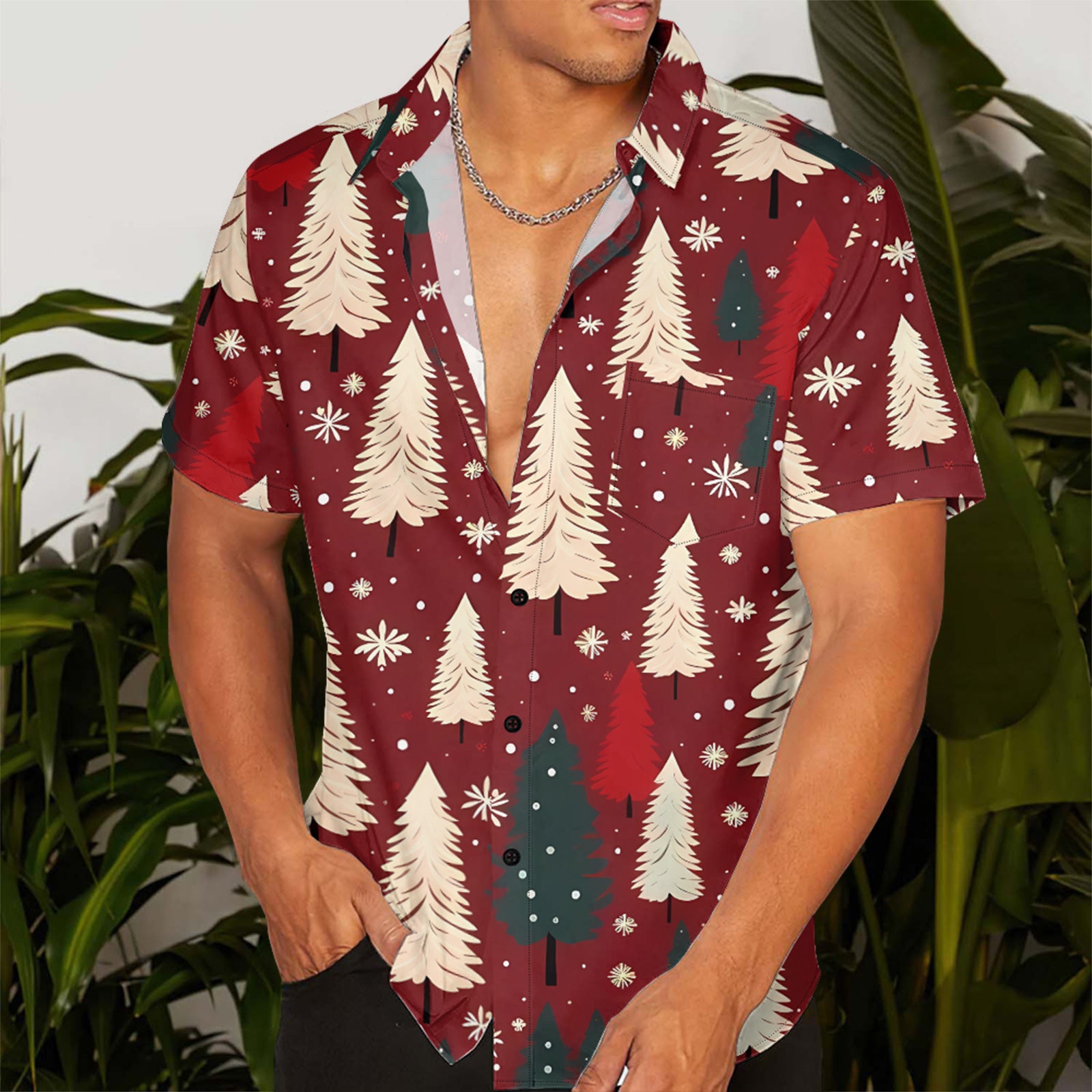 Christmas Trees and Snowflakes Men's Pocket Shirt Stretch Quick Dry Button Up Shirt