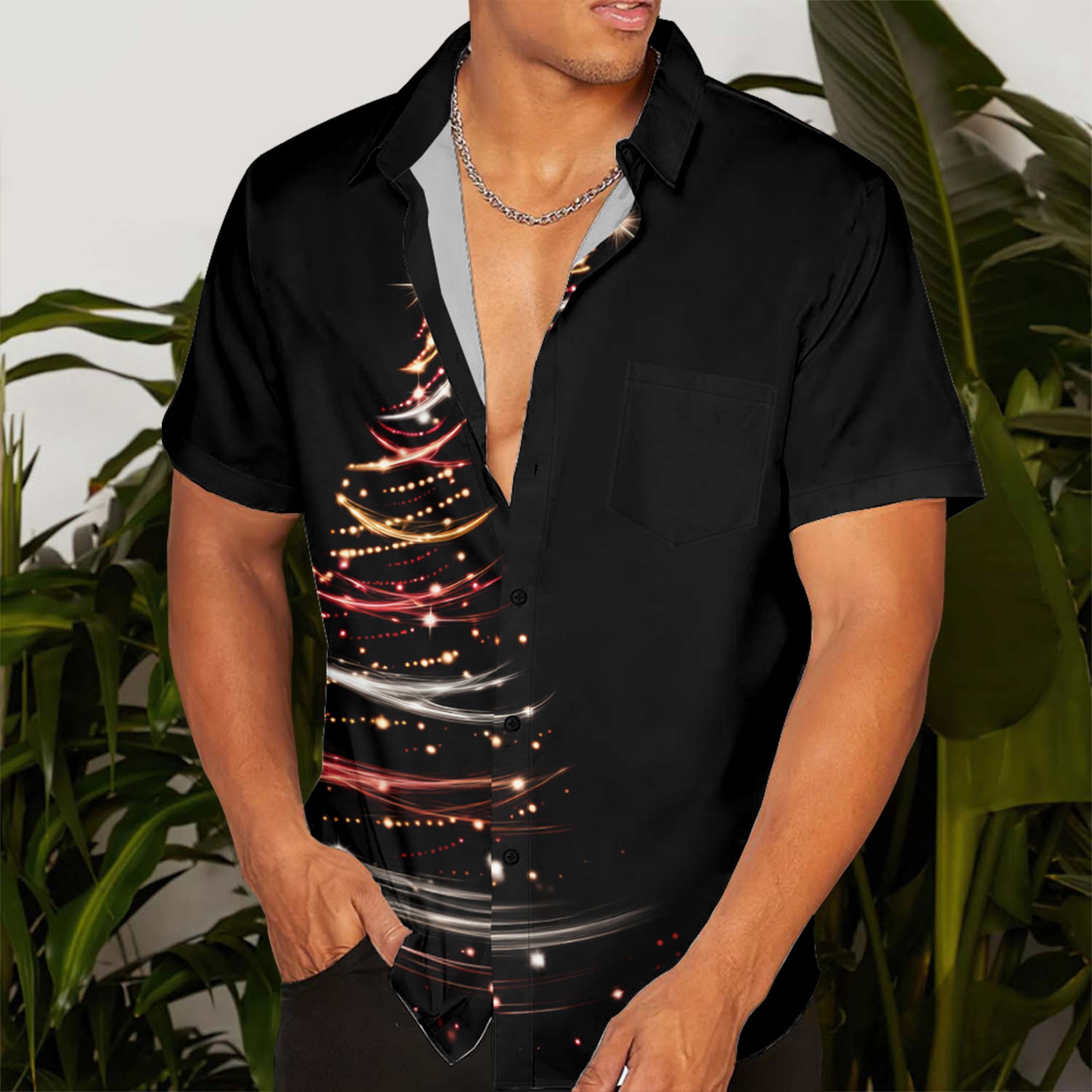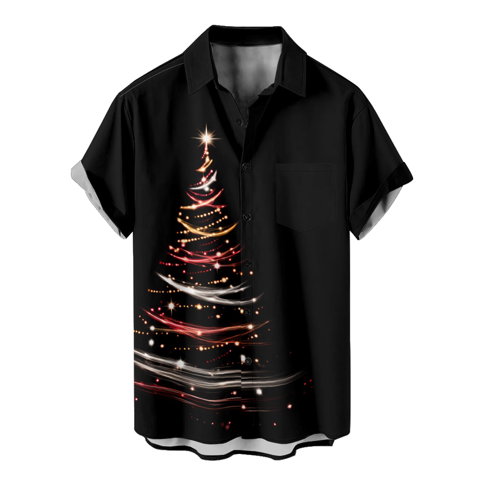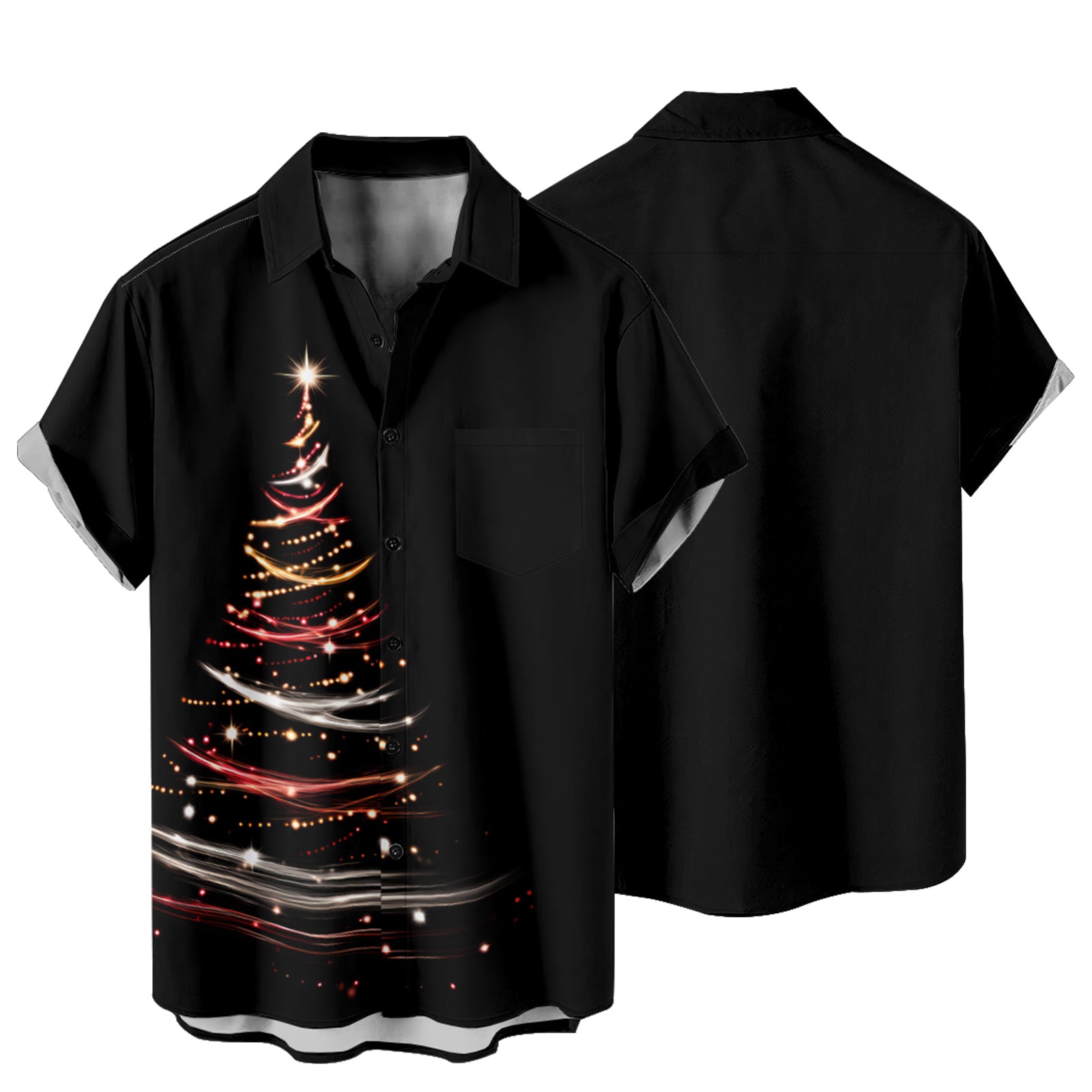 Glitter Gold Christmas Tree Men's Pocket Shirt Stretch Quick Dry Button Up Shirt