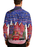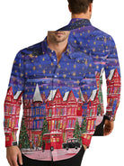 London Christmas Night Oil Painting Men's Shirt Long Sleeve Button Up Shirt
