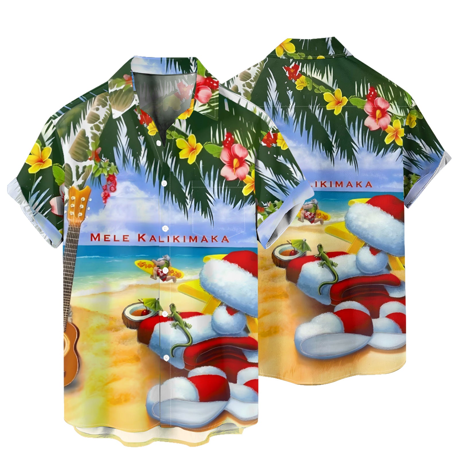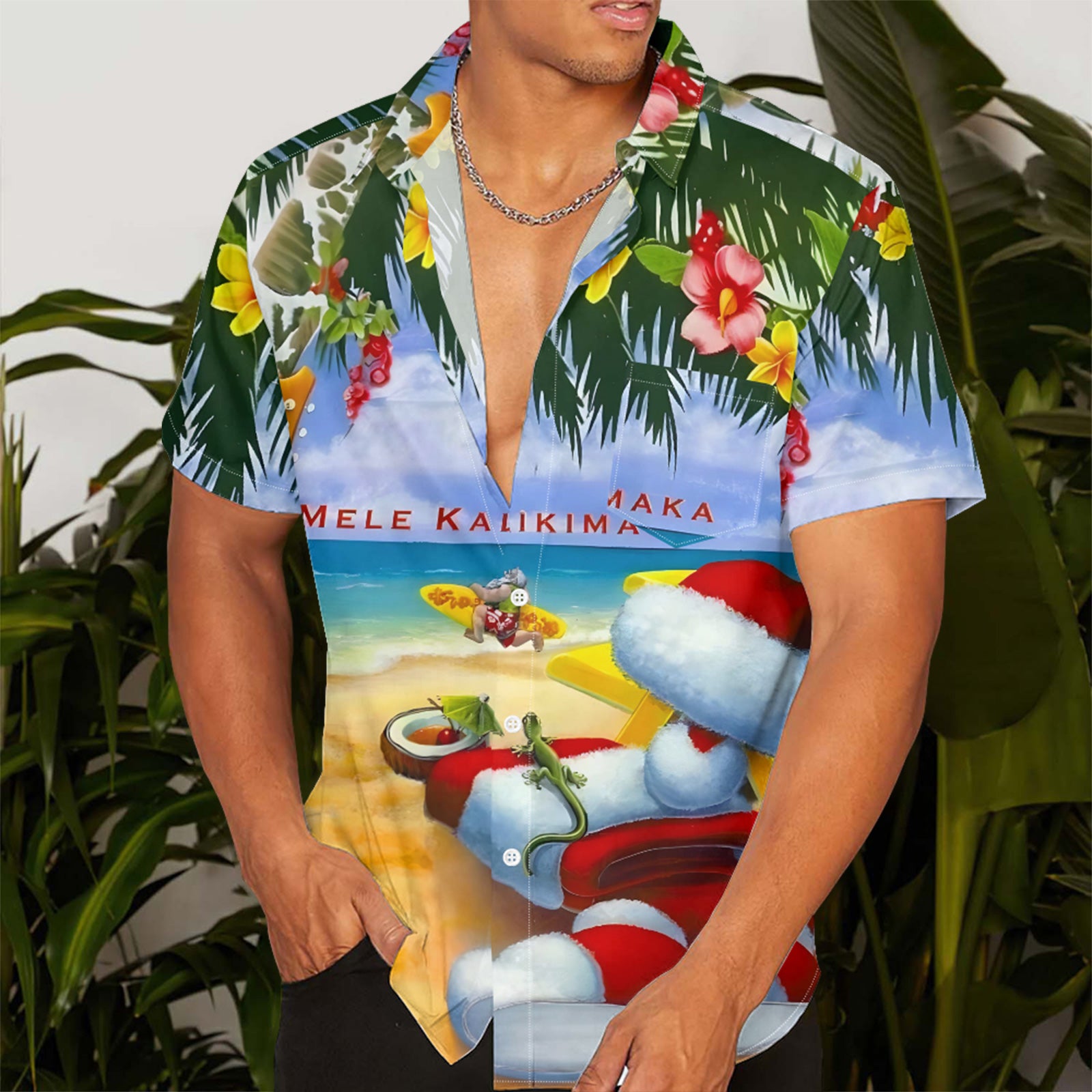 Mele Kalikimaka Merry Christmas Men's Pocket Shirt Stretch Quick Dry Button Up Shirt