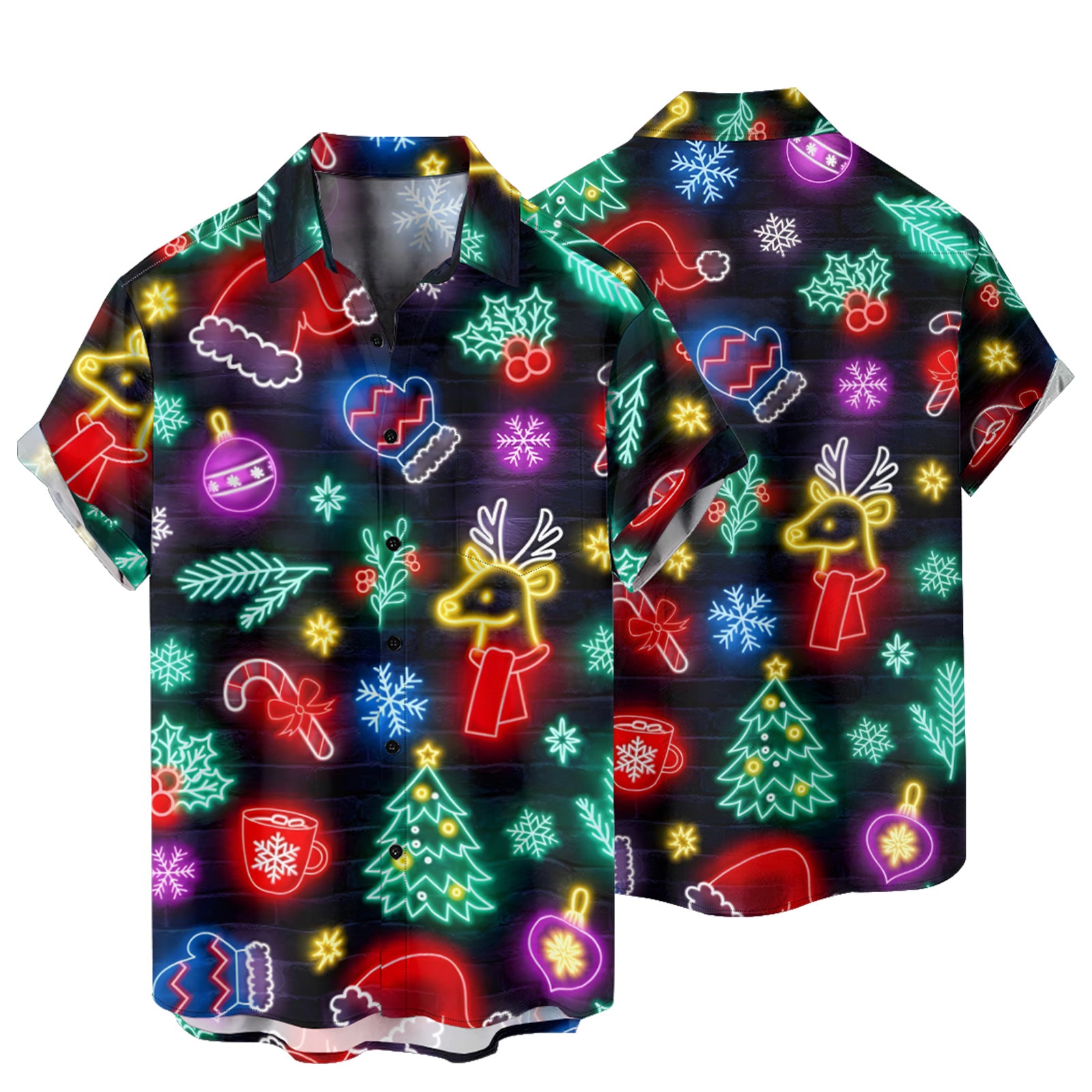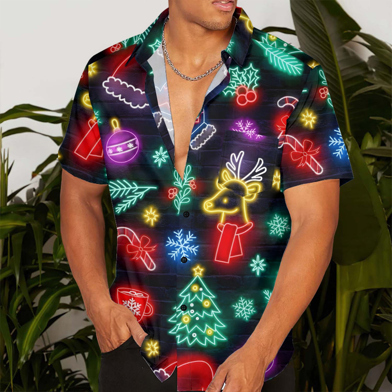 Neon Christmas Elements Men's Pocket Shirt Stretch Quick Dry Button Up Shirt