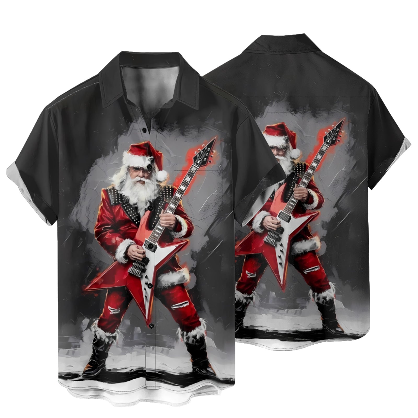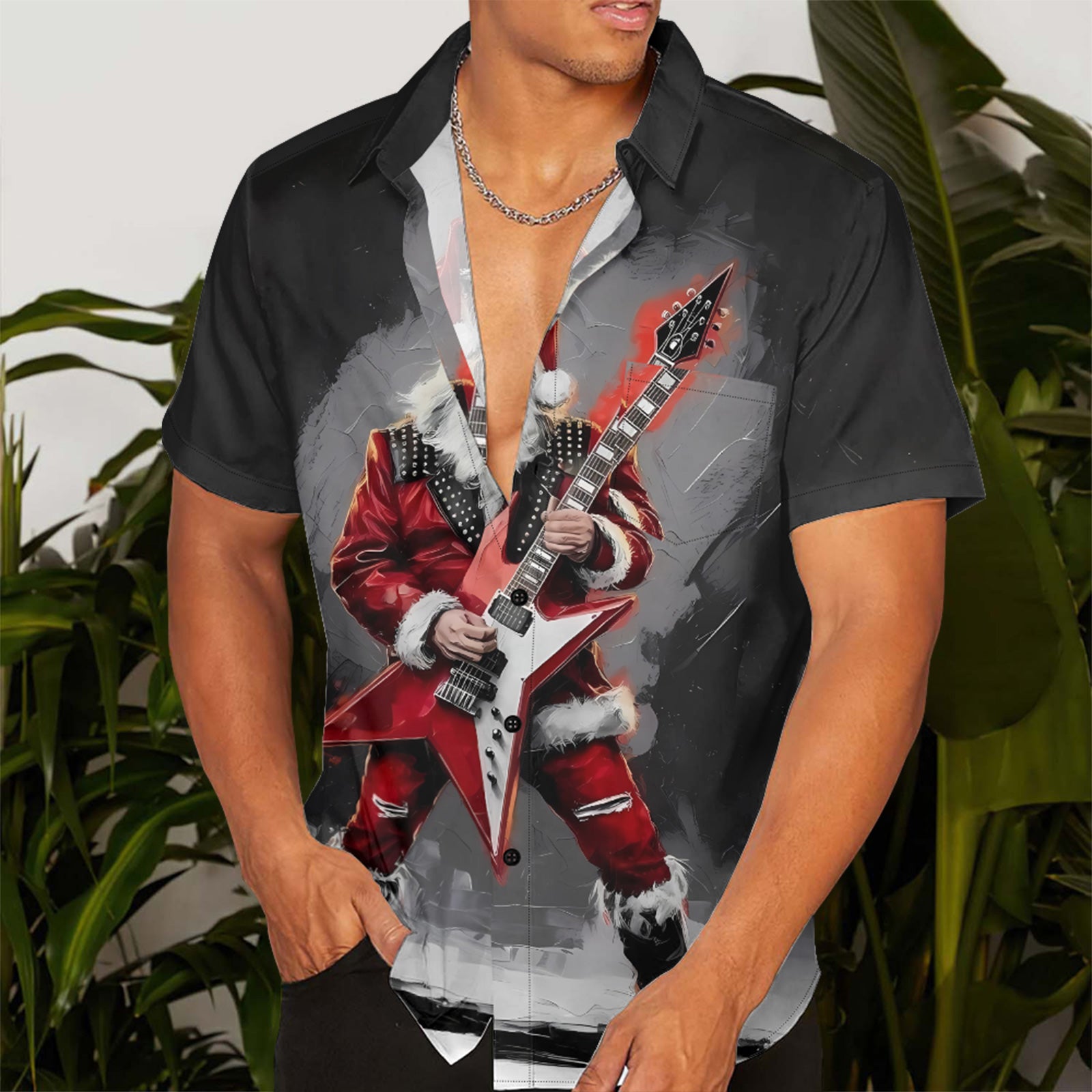 Rockin' Santa Men's Pocket Shirt Stretch Quick Dry Button Up Shirt