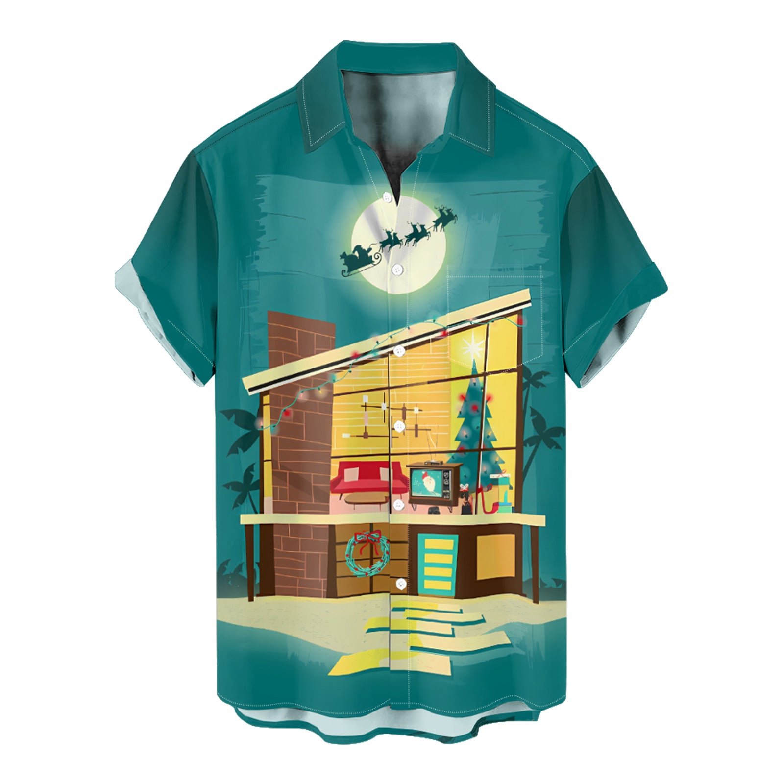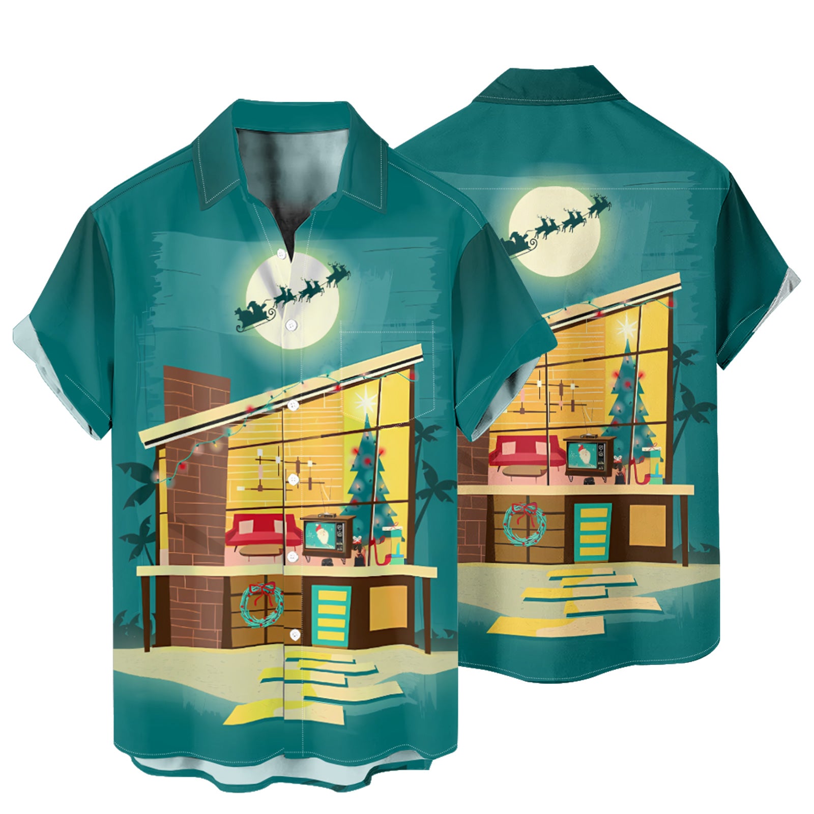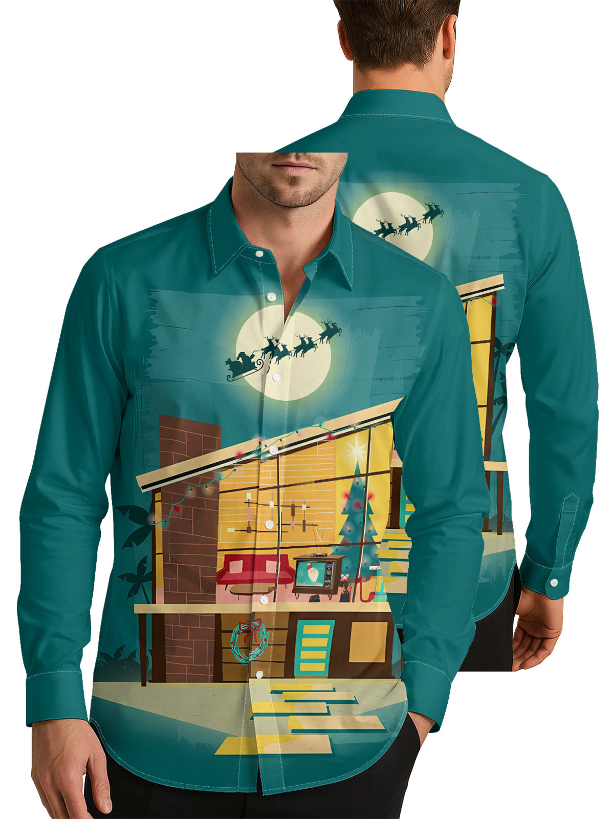 Christmas Retro Mid-century Home Men's Shirt Long Sleeve Button Up Shirt