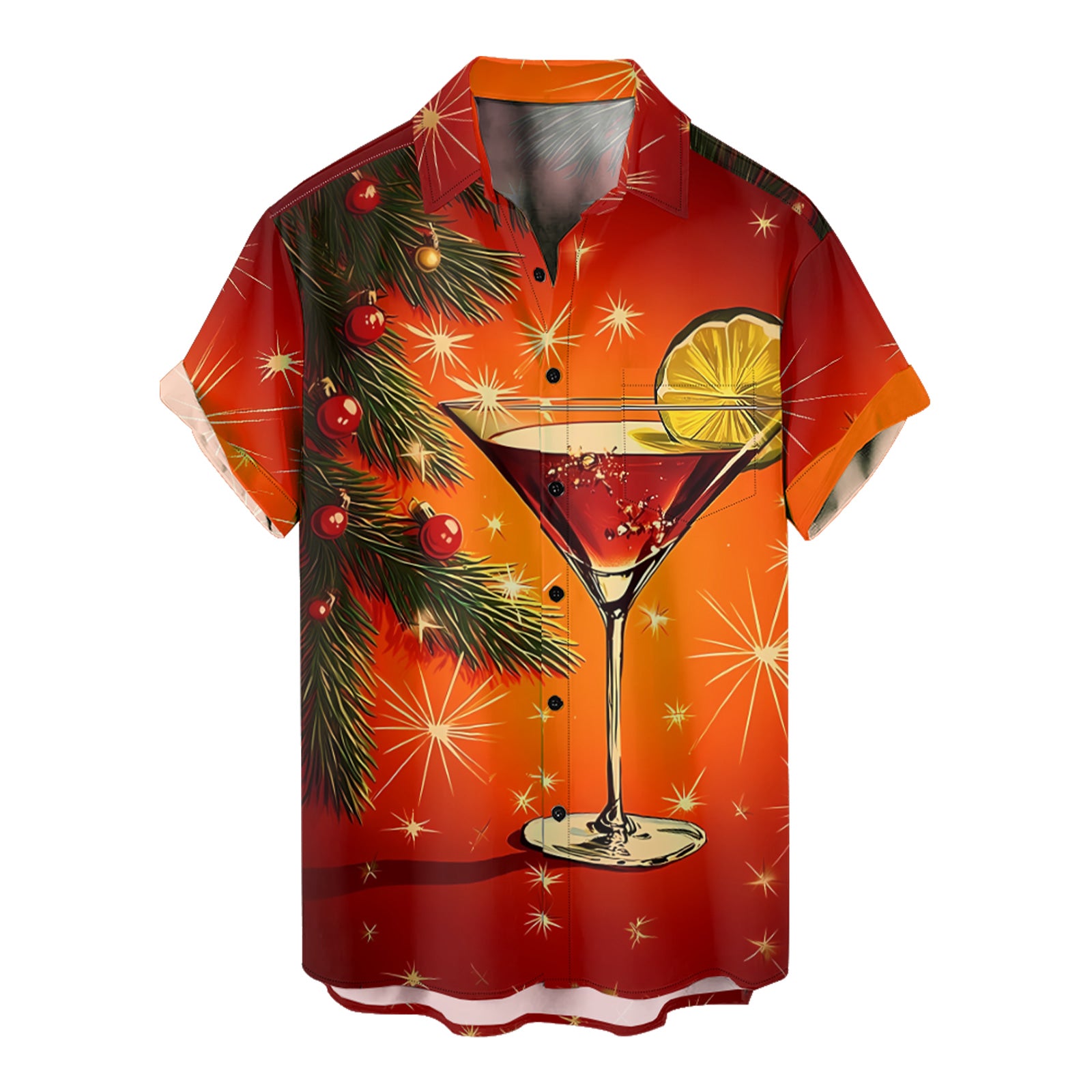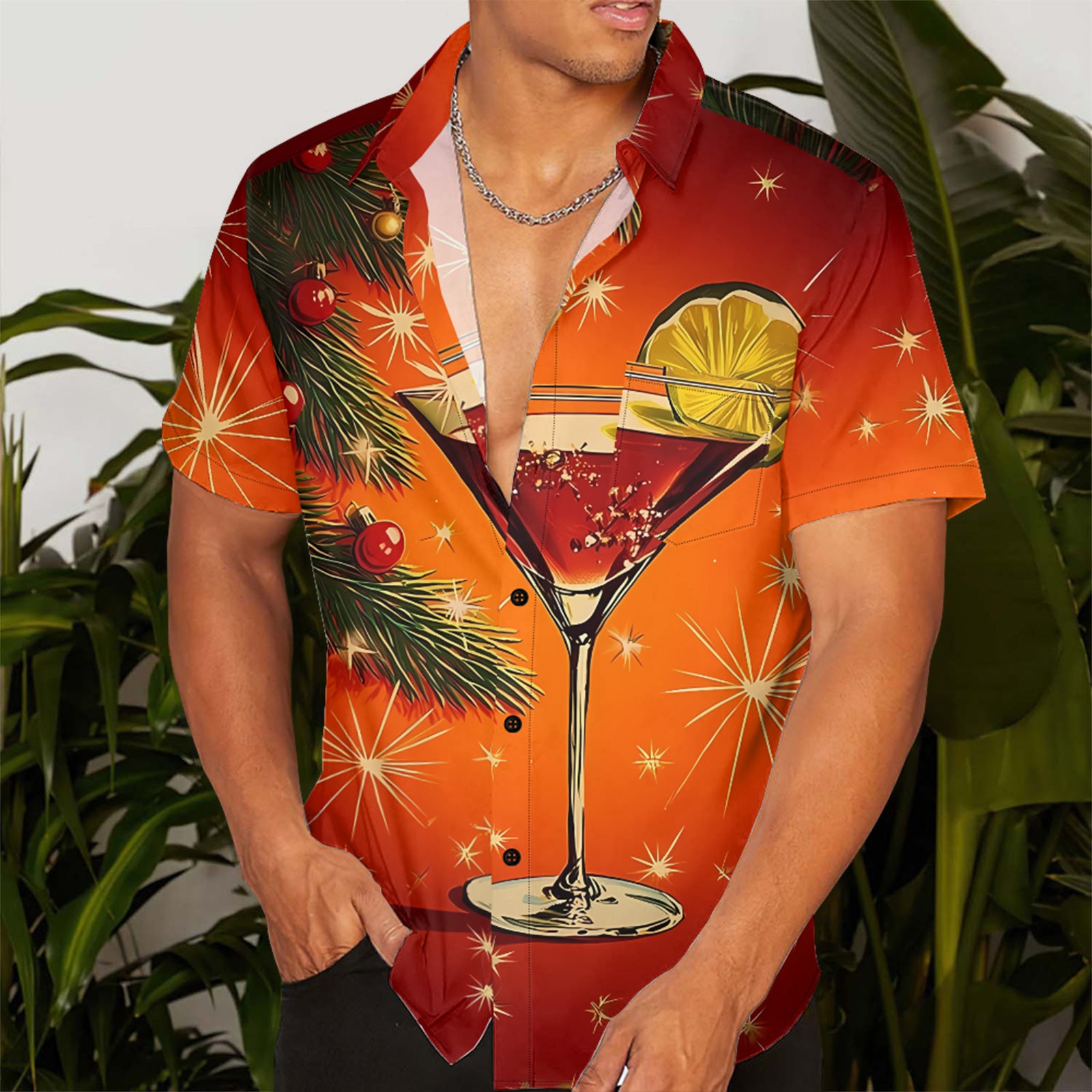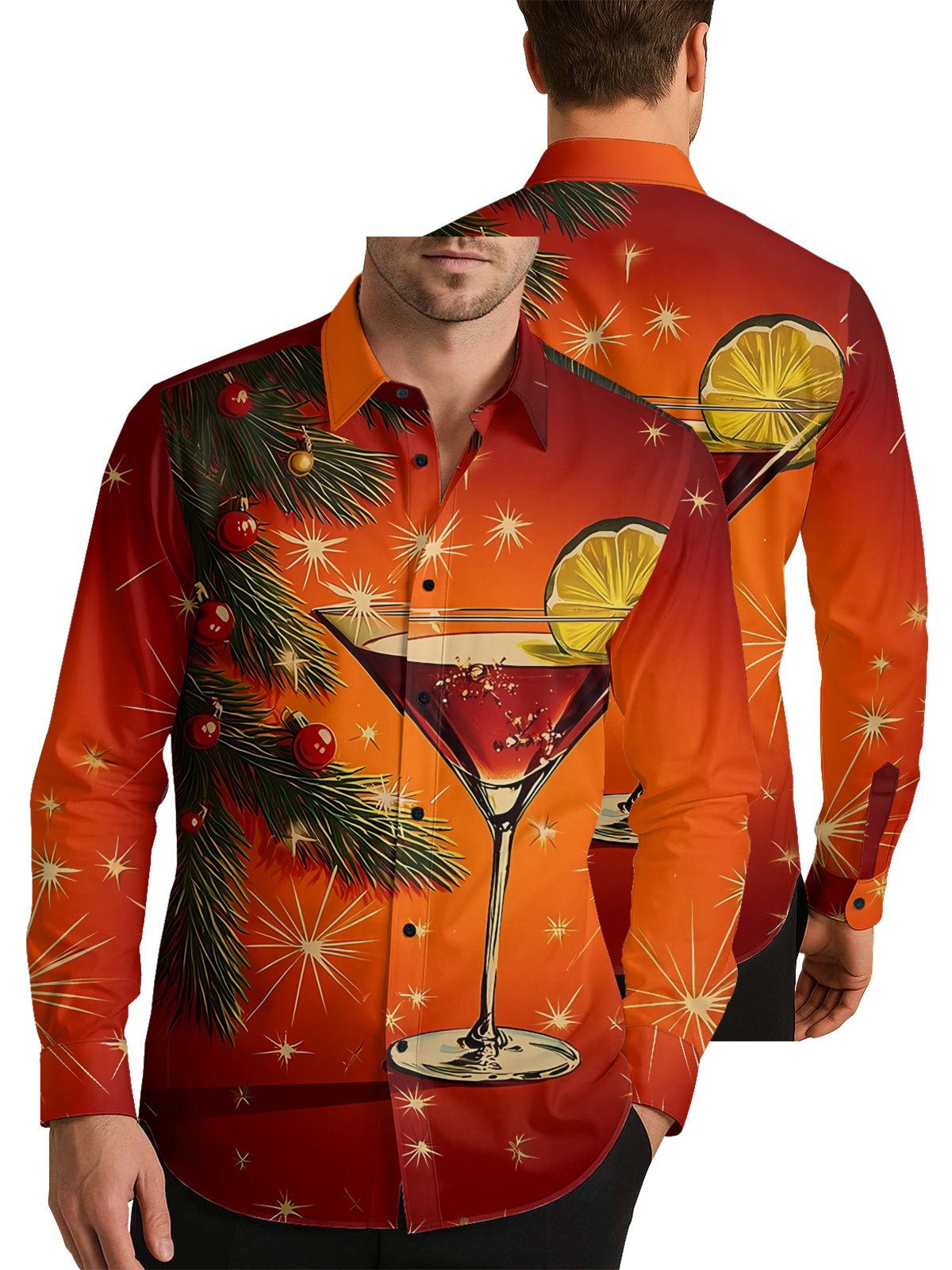 50s Christmas Martini Red Retro Art Men's Shirt Long Sleeve Button Up Shirt