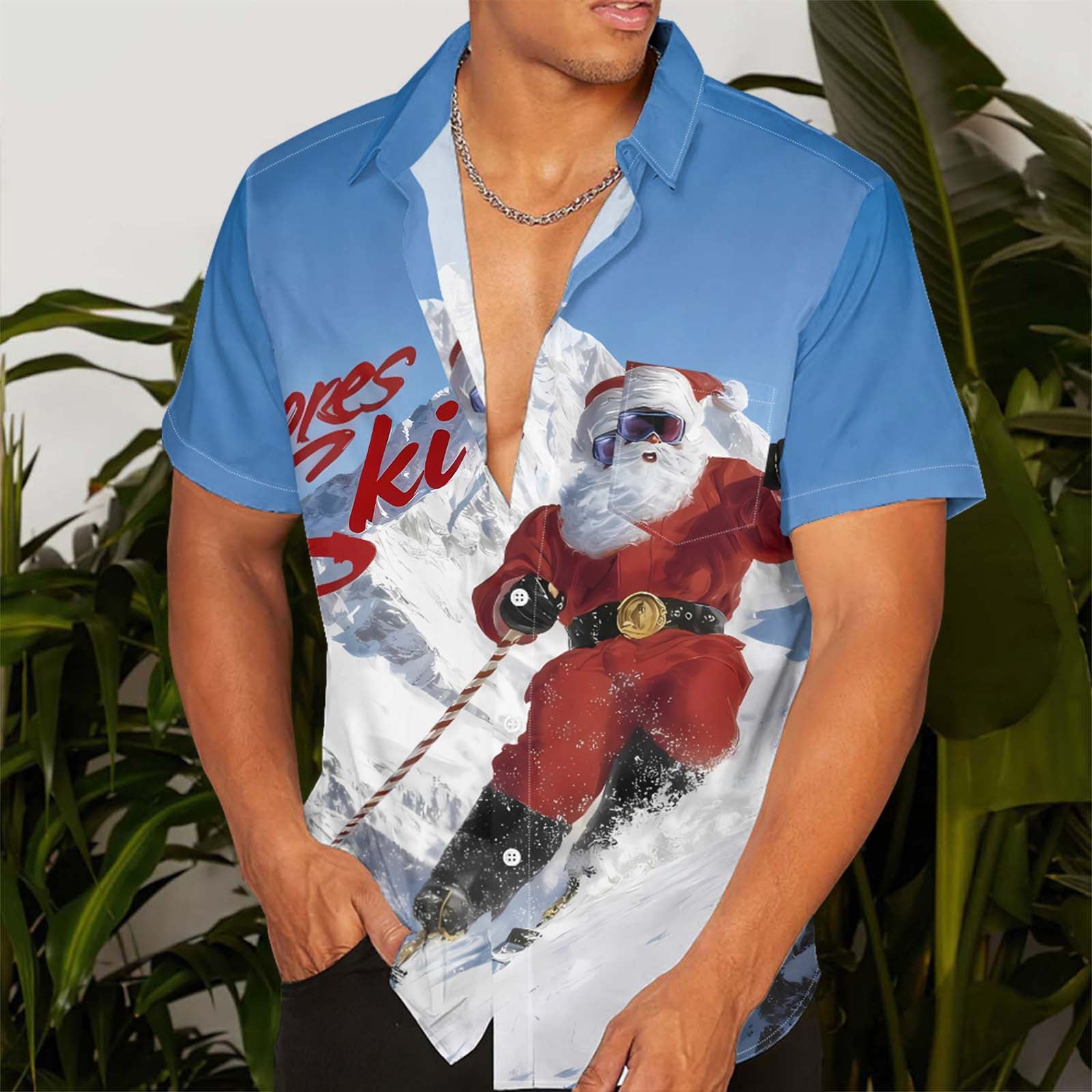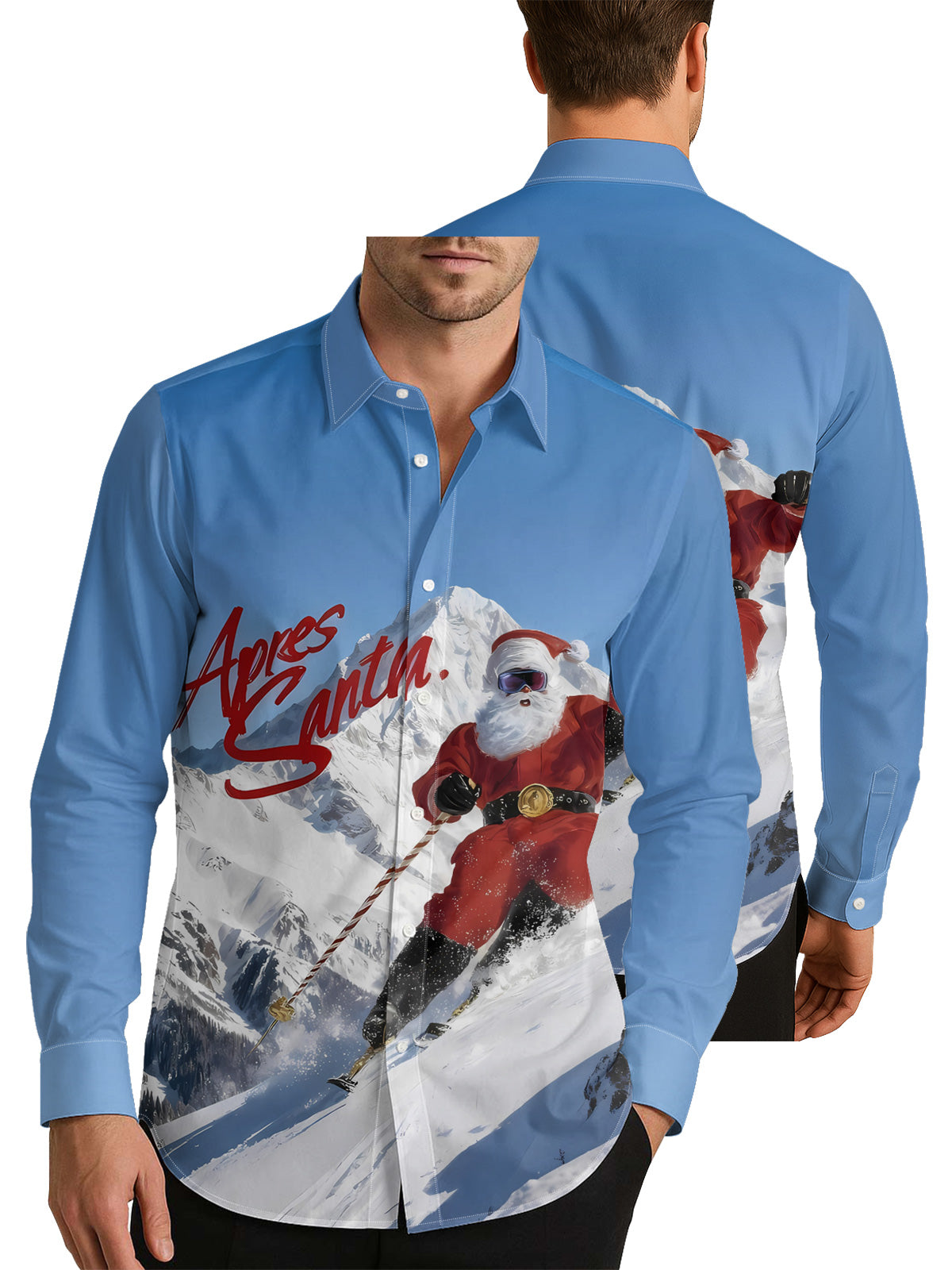 Apres Ski Santa Christmas Men's Shirt Long Sleeve Button Up Shirt