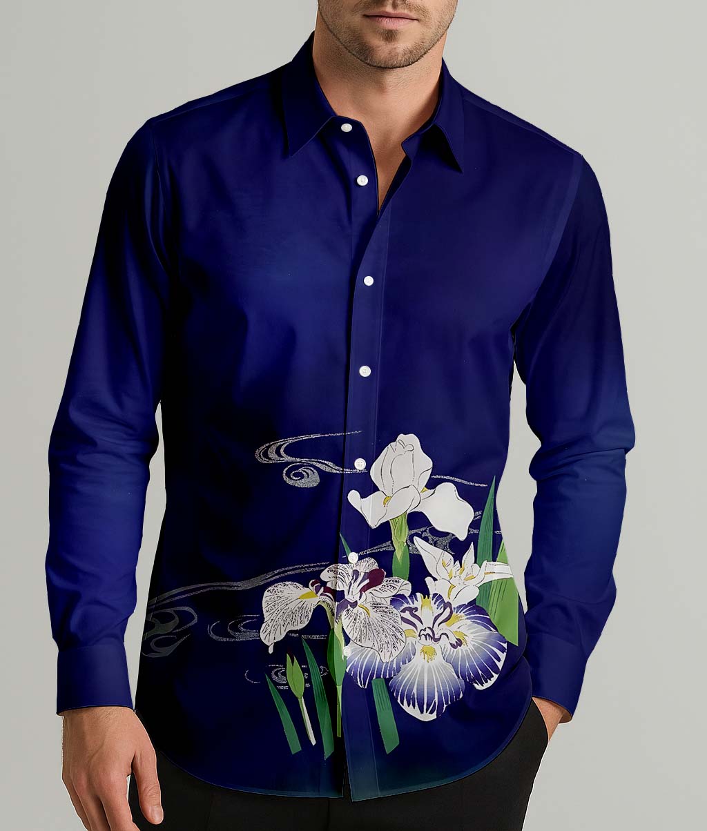Blue Irises Art Men's Shirt Long Sleeve Button Up Shirt