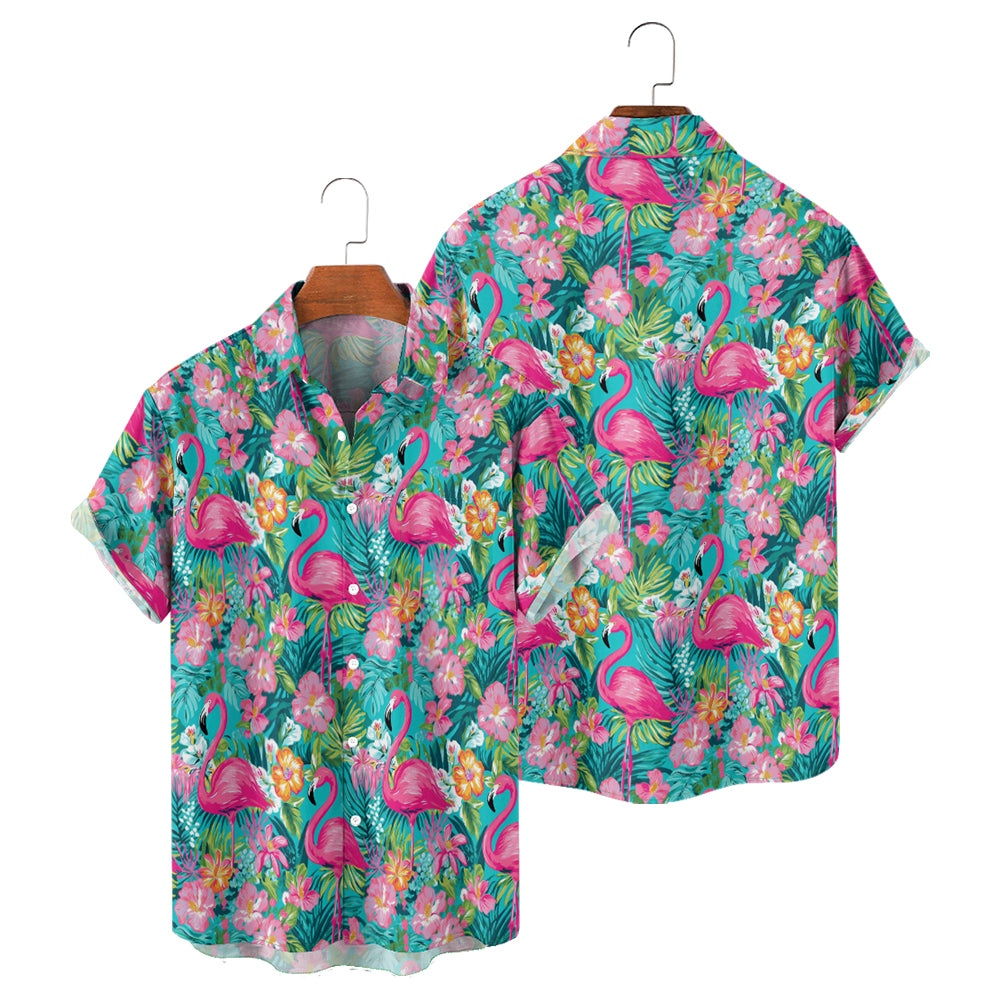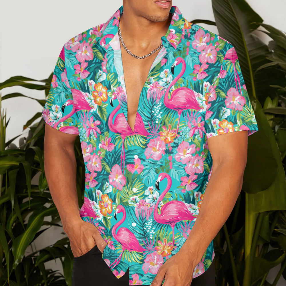 Bright Flamingo Men's Pocket Shirt Stretch Quick Dry Button Up Shirt