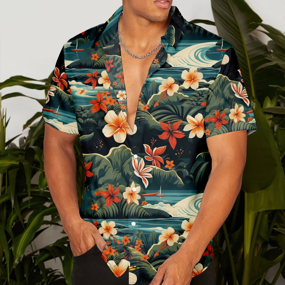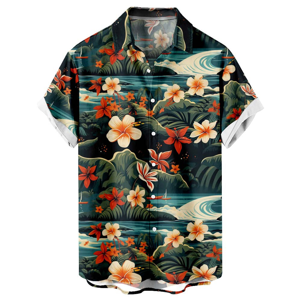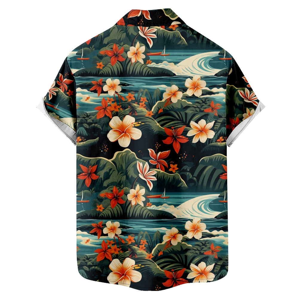 Hawaiian Floral Men's Pocket Shirt Stretch Quick Dry Button Up Shirt