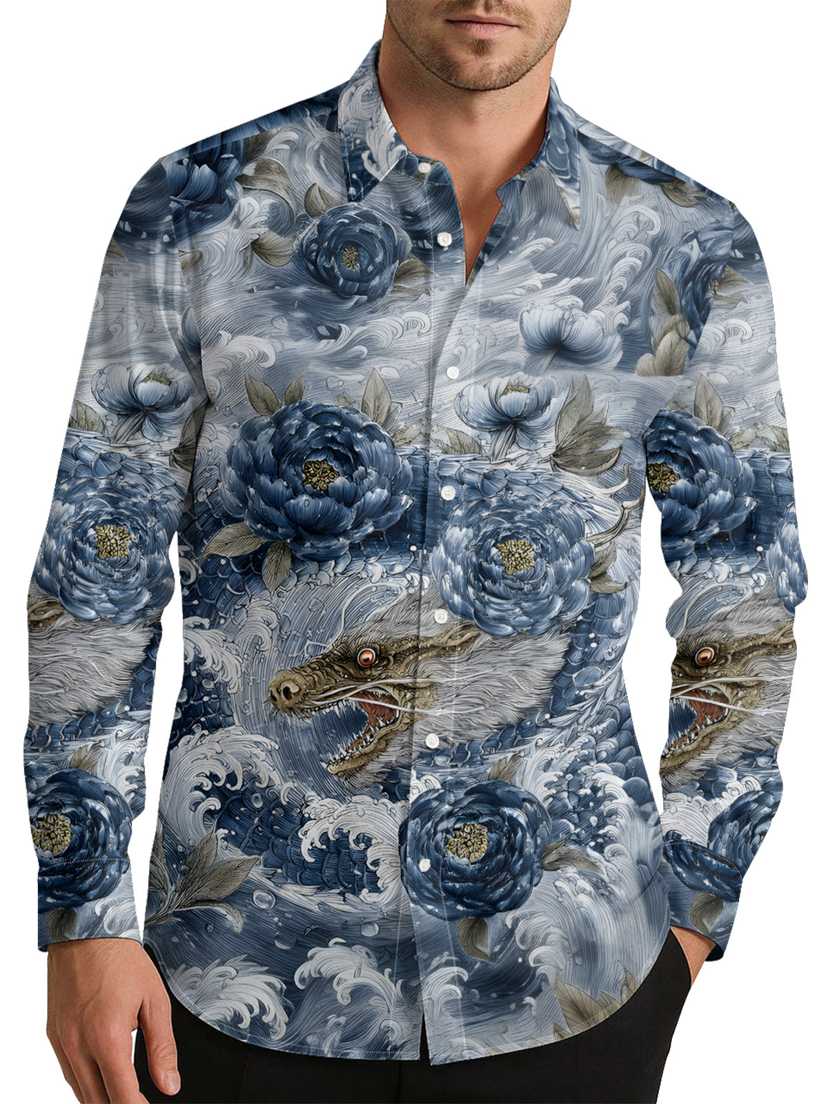 Peony and Dragon Men's Shirt Long Sleeve Button Up Shirt