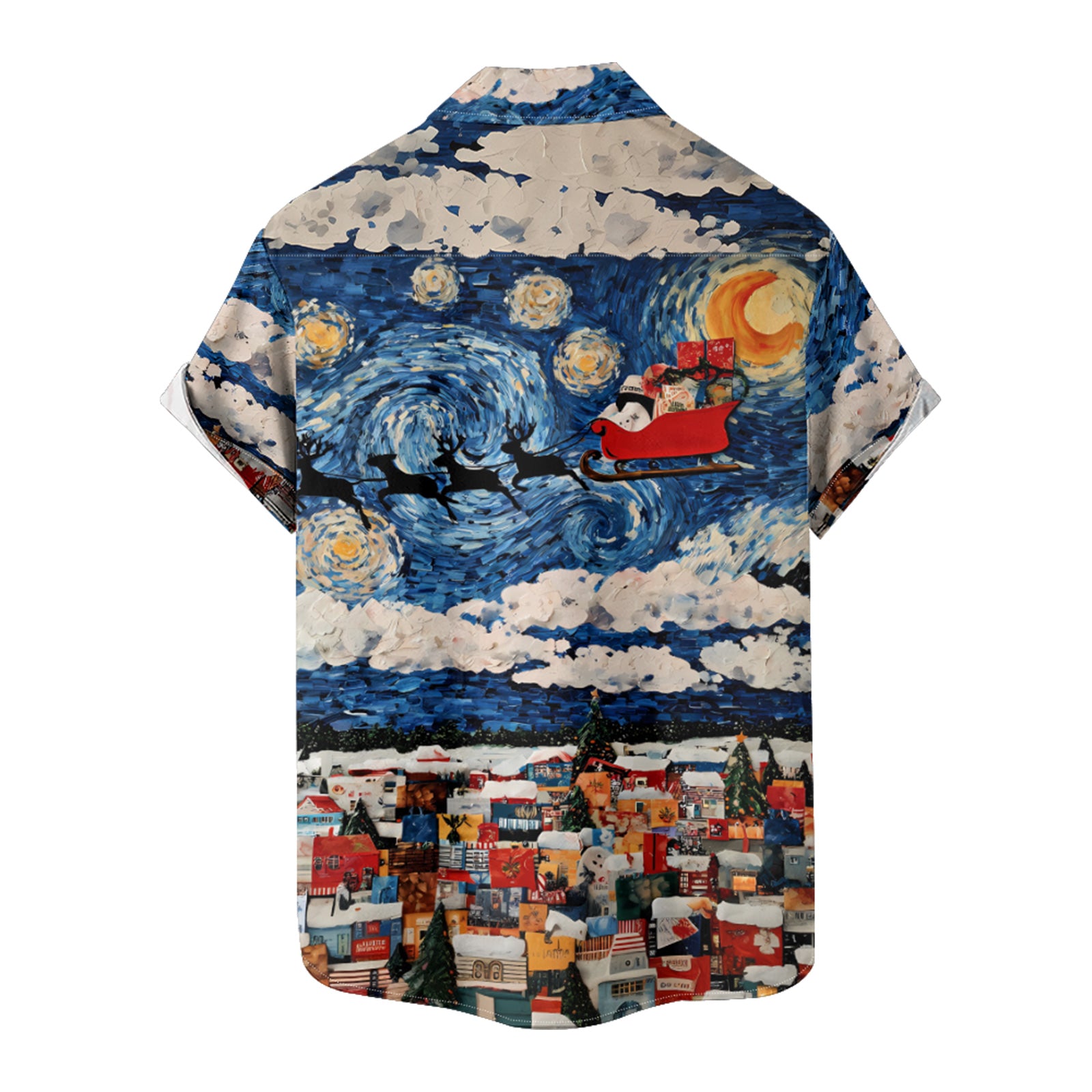 Starry Christmas Night Oil Painting Men's Pocket Shirt Stretch Quick Dry Button Up Shirt