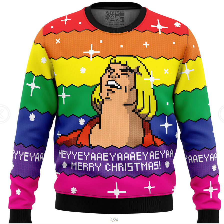 Heyyeya He-Man LGBT Rainbow Men's Crew Neck Ugly Christmas Sweatshirt
