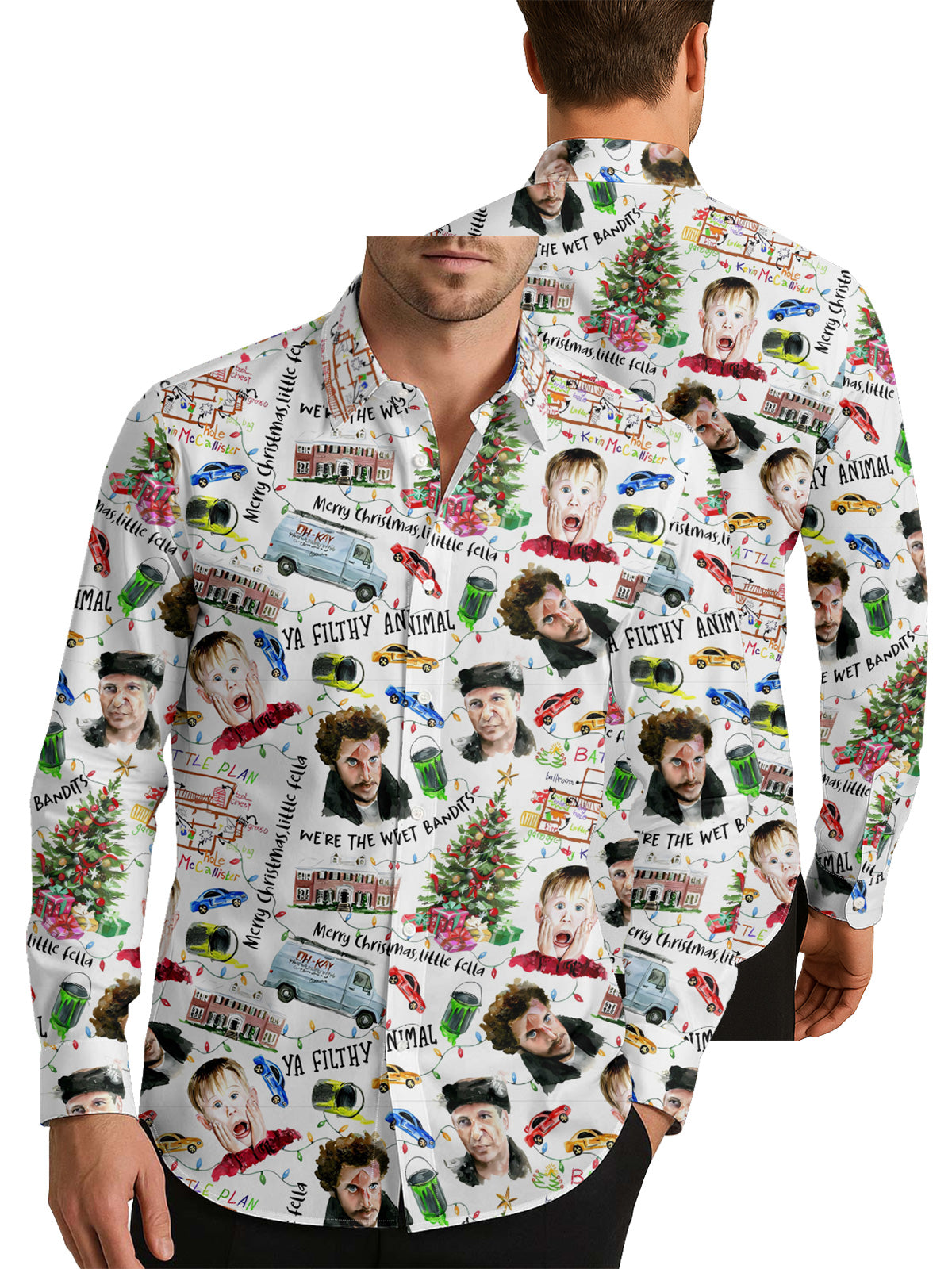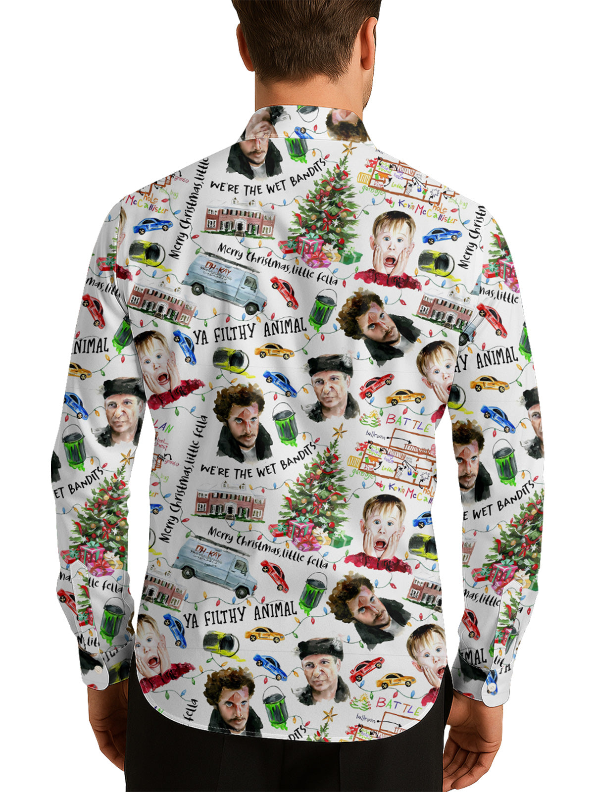 Home Alone Men's Shirt Long Sleeve Button Up Shirt