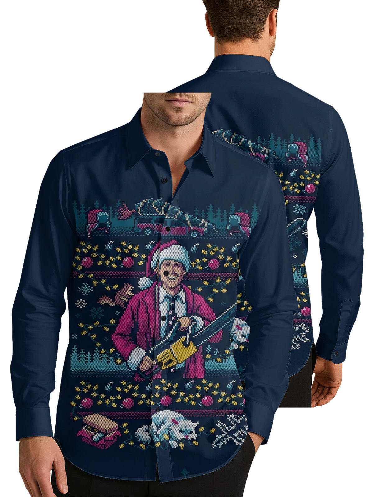 Santa Claus Without Reindeer Men's Shirt Long Sleeve Button Up Shirt
