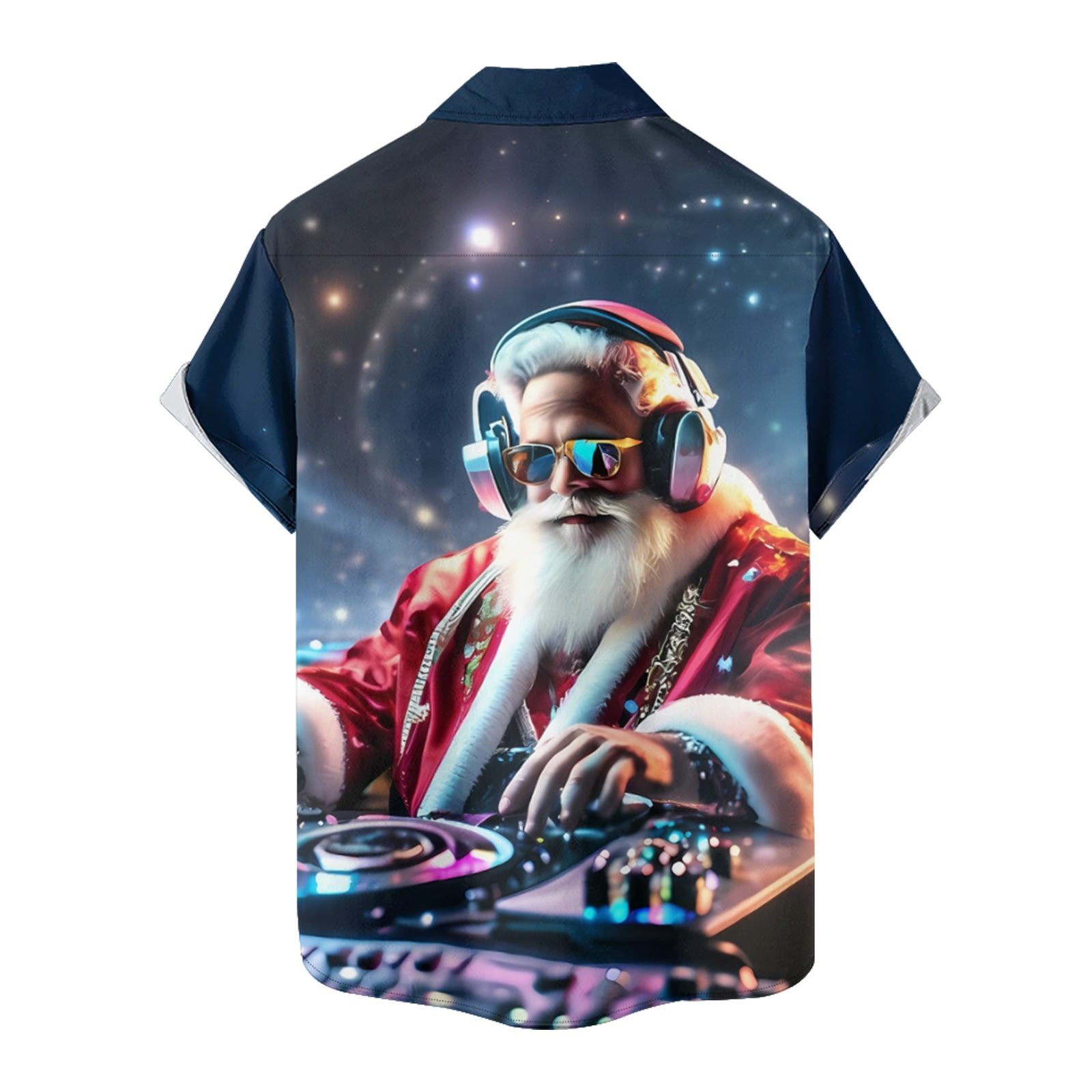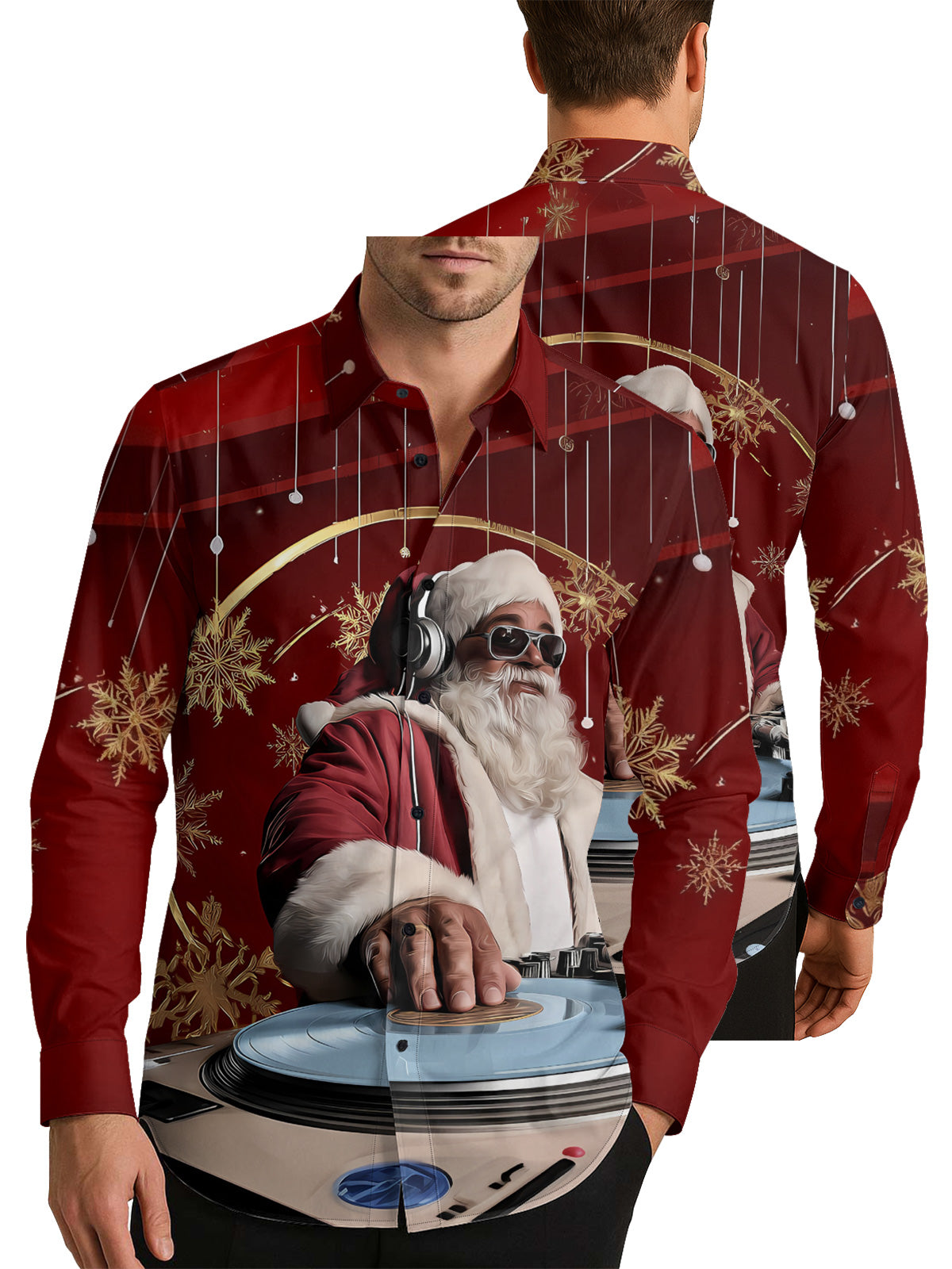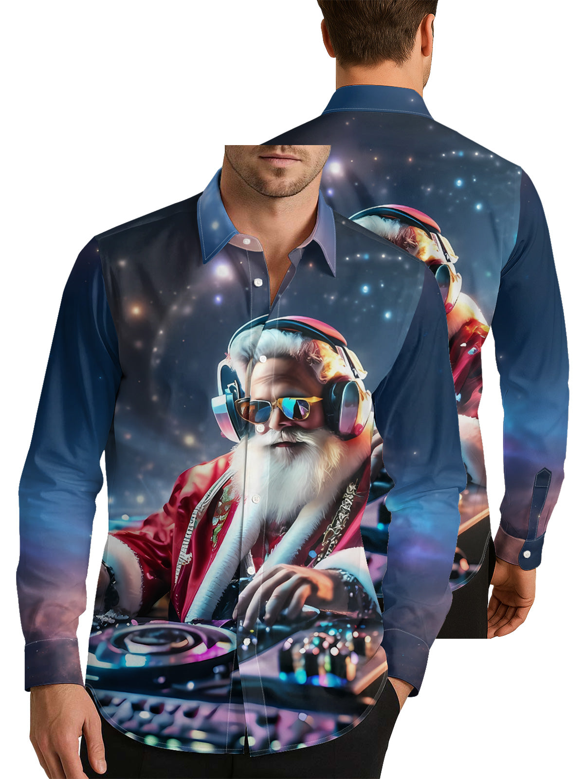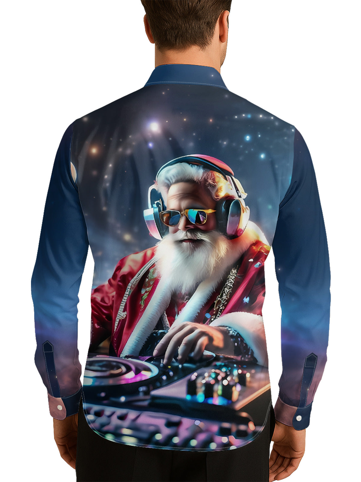 DJ Santa Claus Men's Shirt Long Sleeve Button Up Shirt