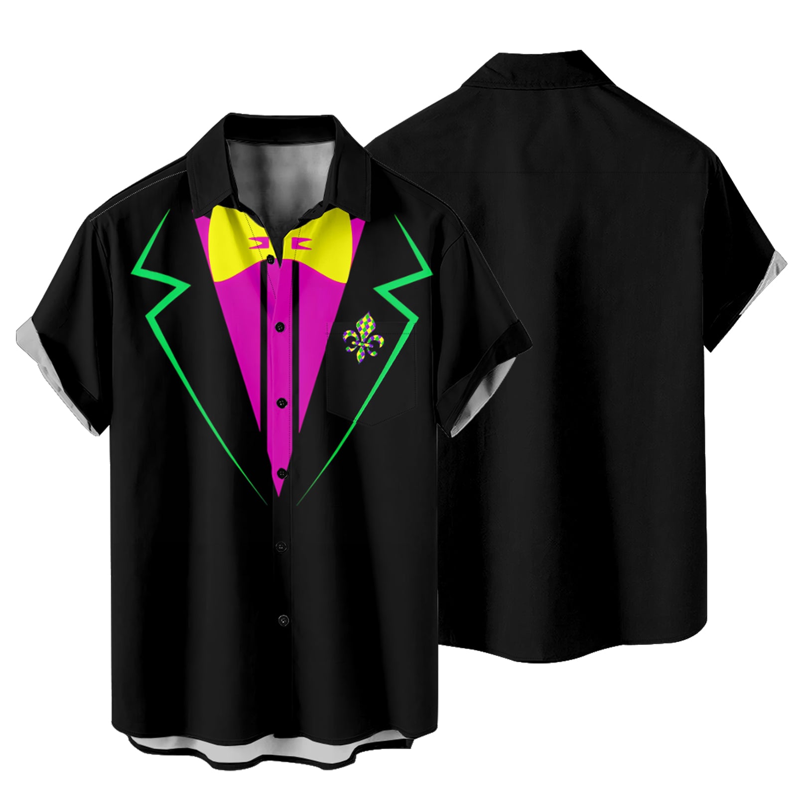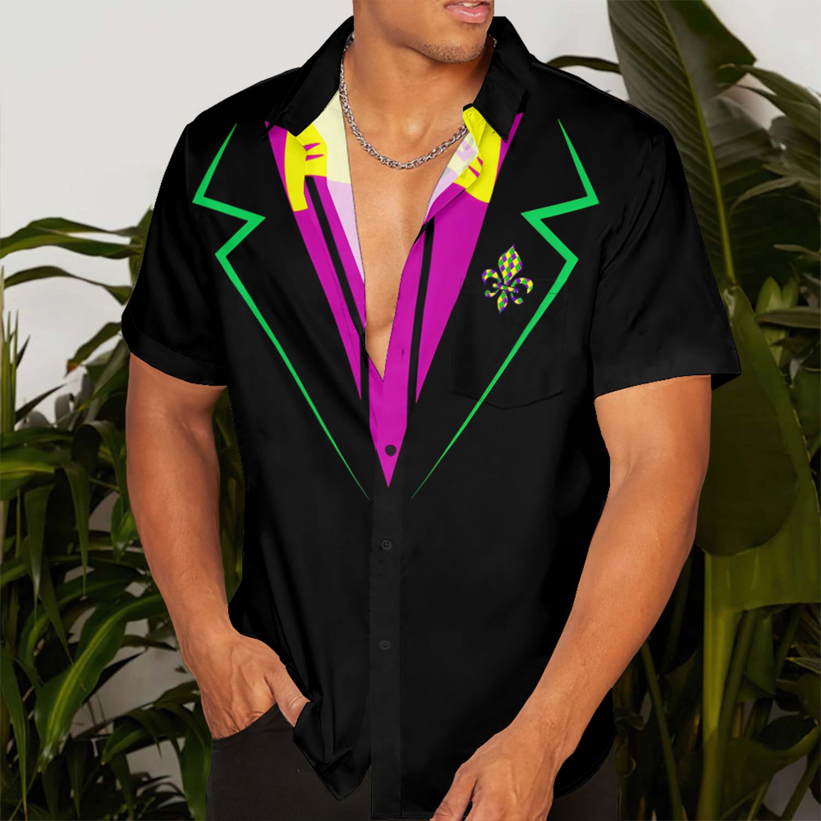 Mardi Gras Necktie Print Men's Pocket Shirt Stretch Quick Dry Button Up Shirt