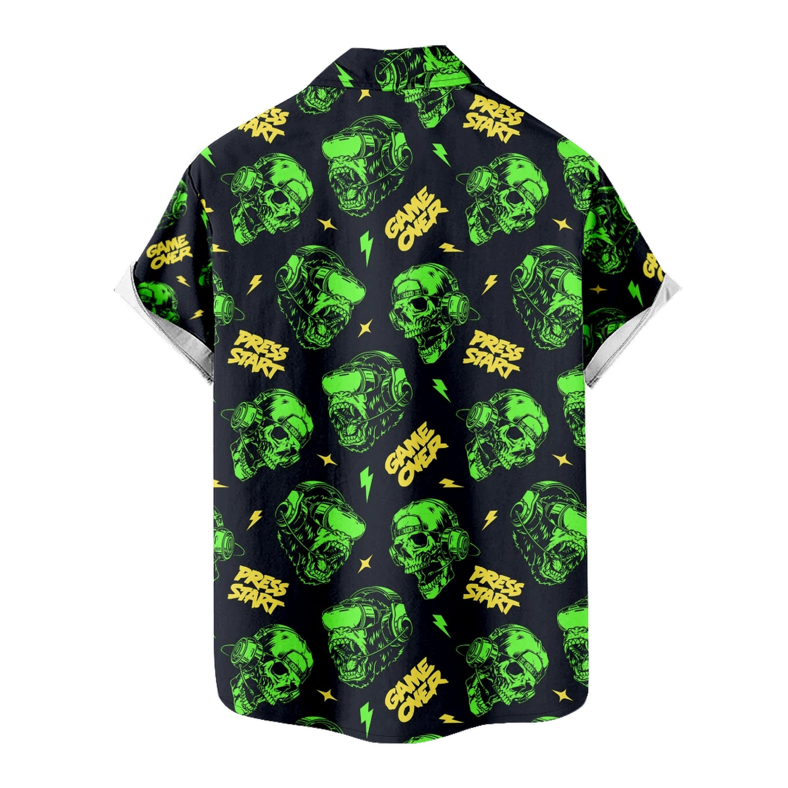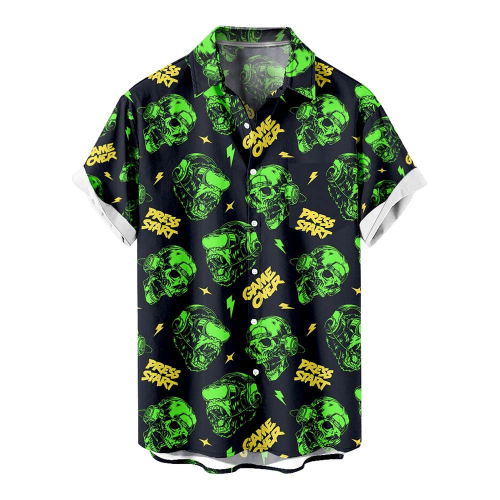 Green Cyber Sports Men's Pocket Shirt Stretch Quick Dry Button Up Shirt