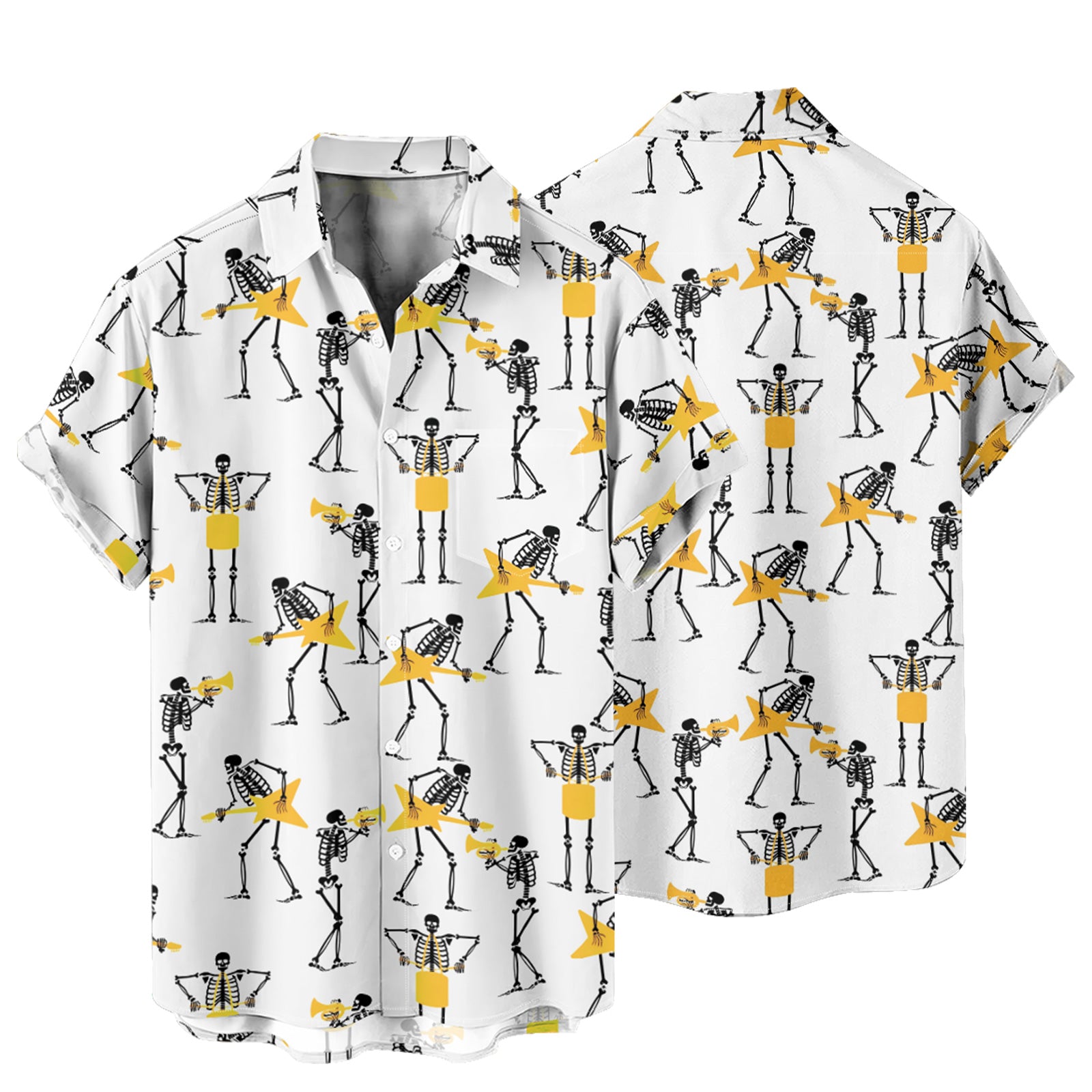 Skull Rock Band Men's Pocket Shirt Stretch Quick Dry Button Up Shirt