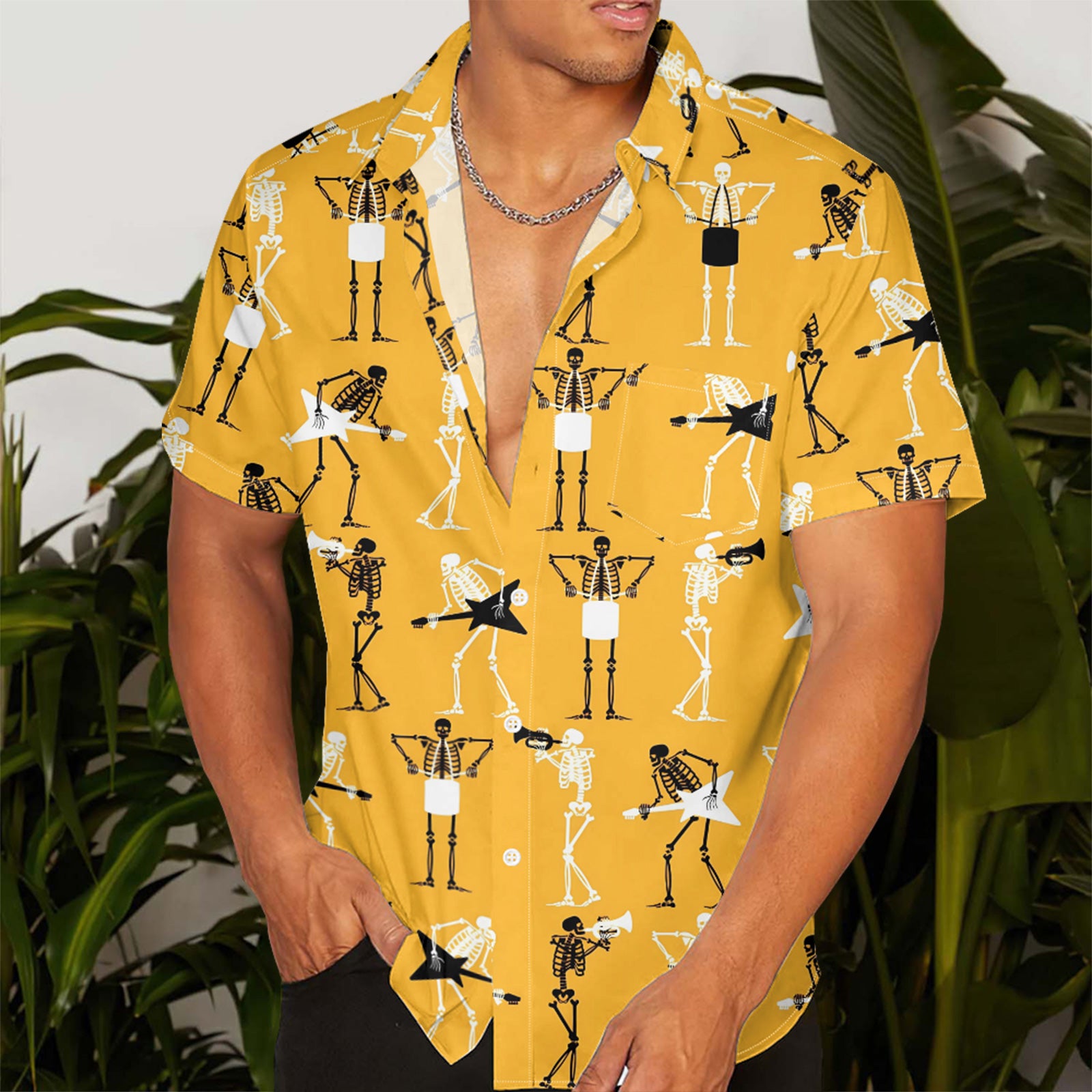 Fitness Skeletons Men's Pocket Shirt Stretch Quick Dry Button Up Shirt