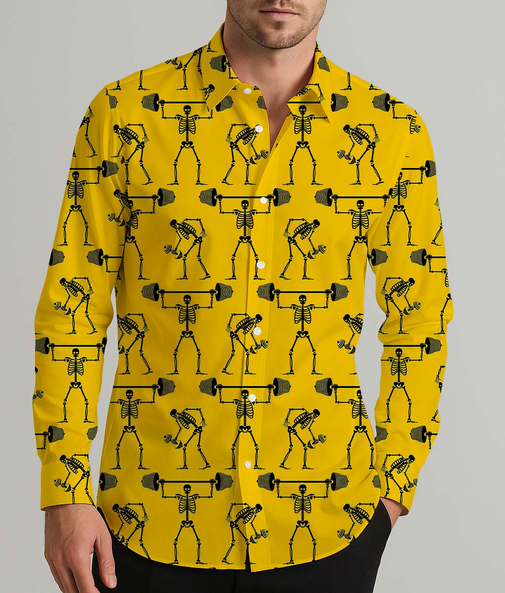 Fitness Skeletons Men's Shirt Long Sleeve Button Up Shirt