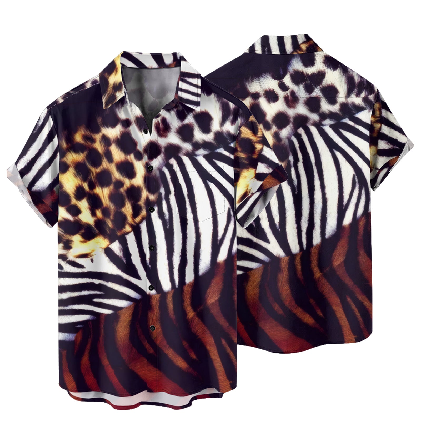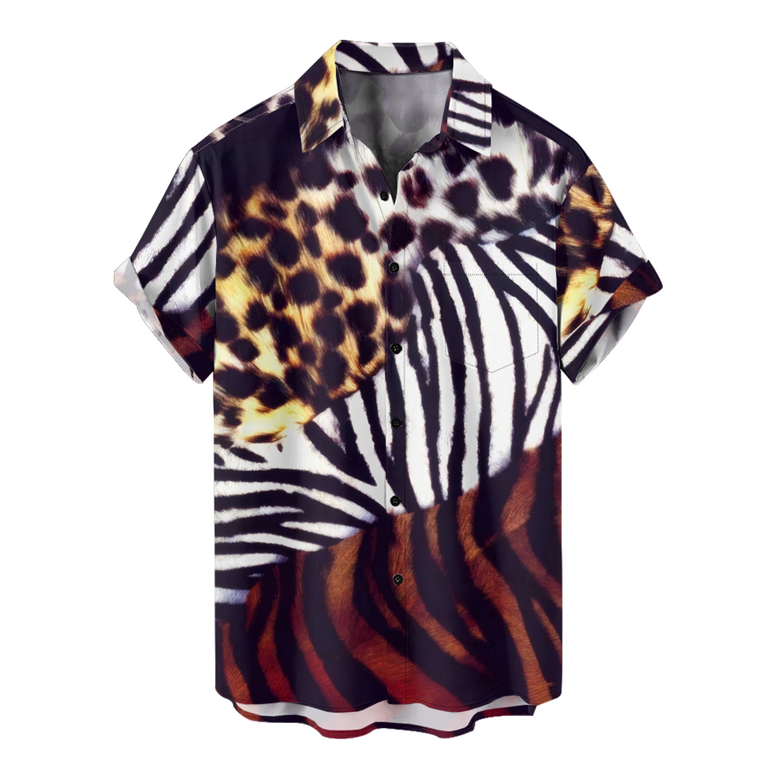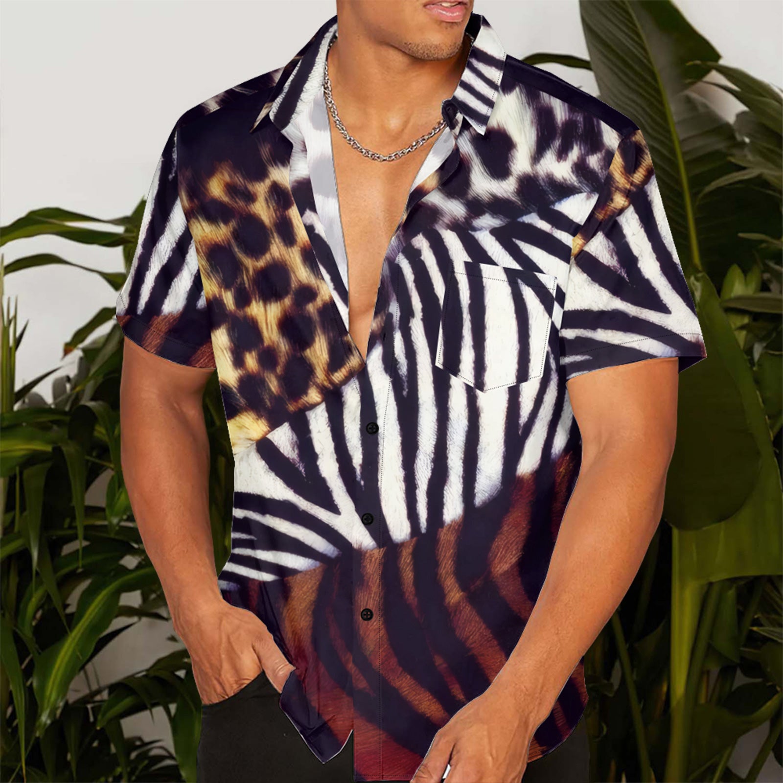 Animalize Leopard Print Men's Pocket Shirt Stretch Quick Dry Button Up Shirt