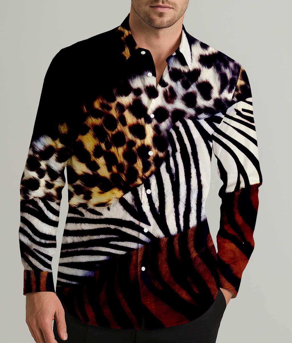 Animalize Leopard Print Men's Shirt Long Sleeve Button Up Shirt