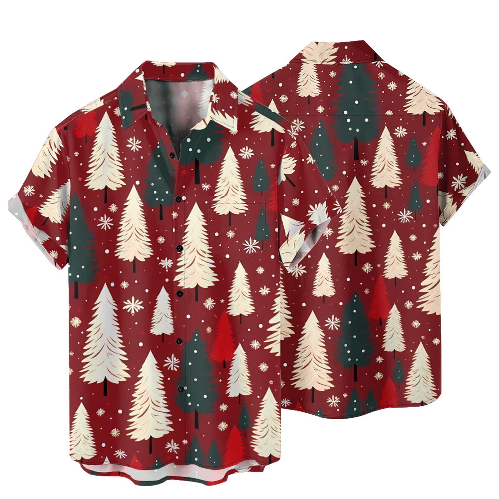 Christmas Trees and Snowflakes Men's Pocket Shirt Stretch Quick Dry Button Up Shirt