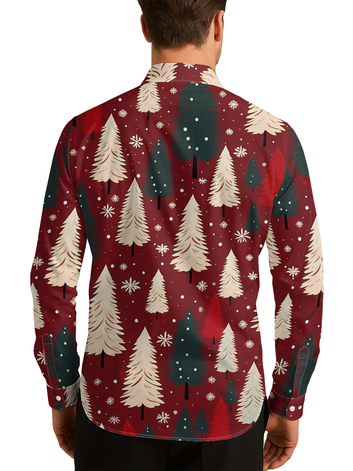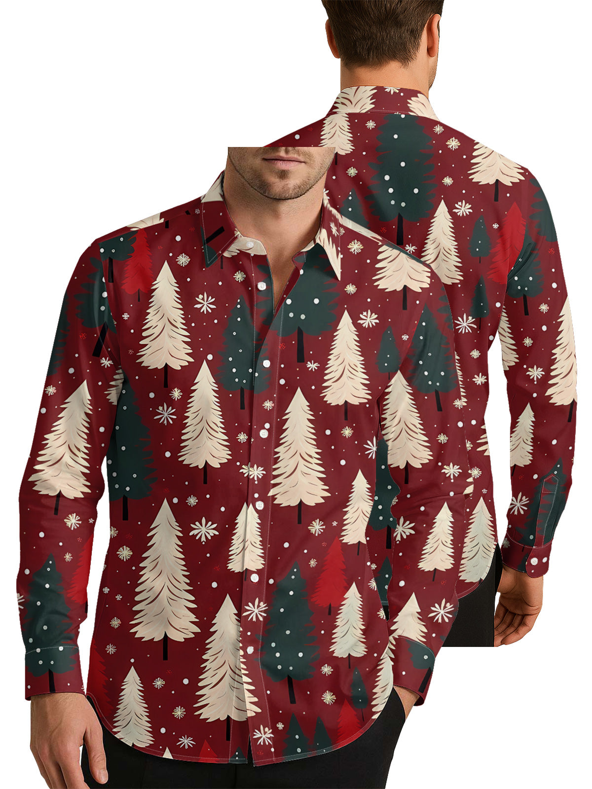 Christmas Trees and Snowflakes Men's Shirt Long Sleeve Button Up Shirt