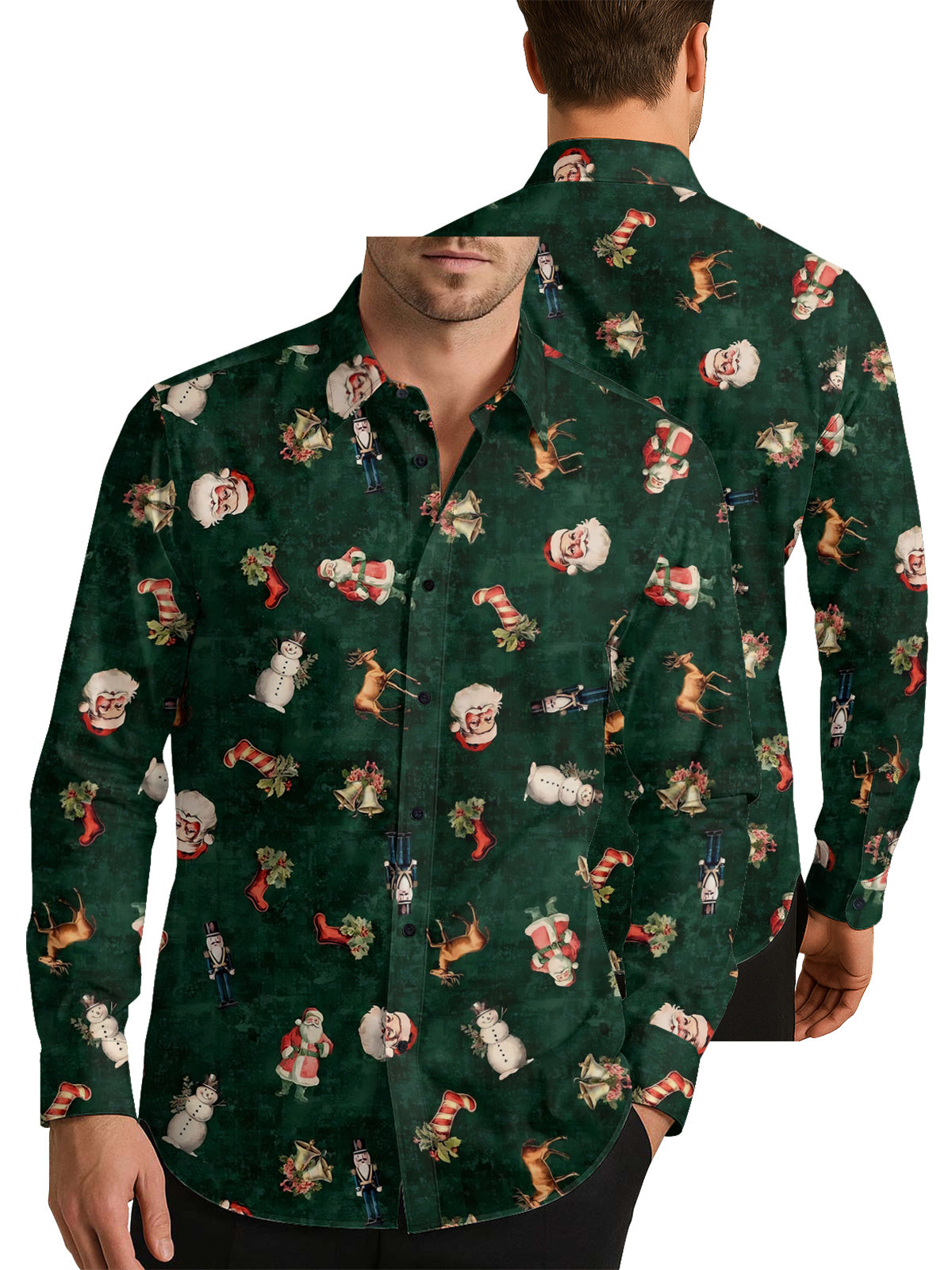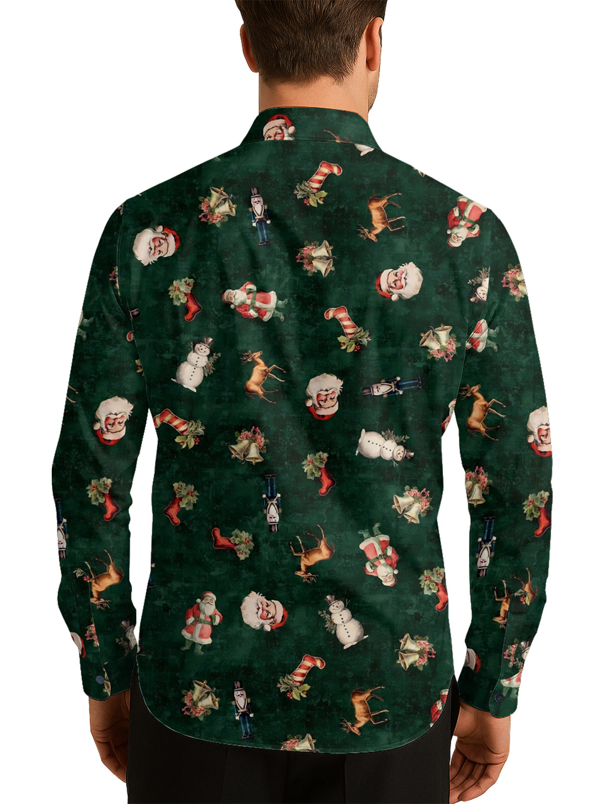 Vintage Christmas Men's Shirt Long Sleeve Button Up Shirt