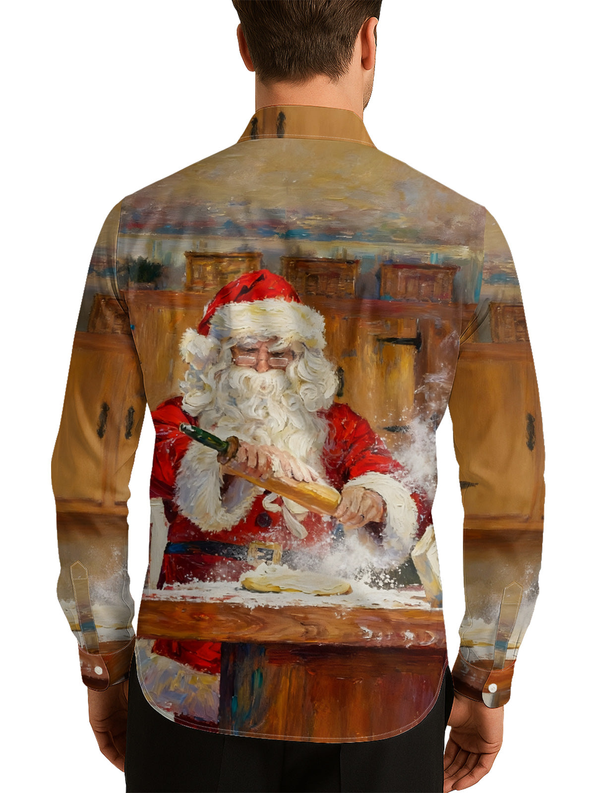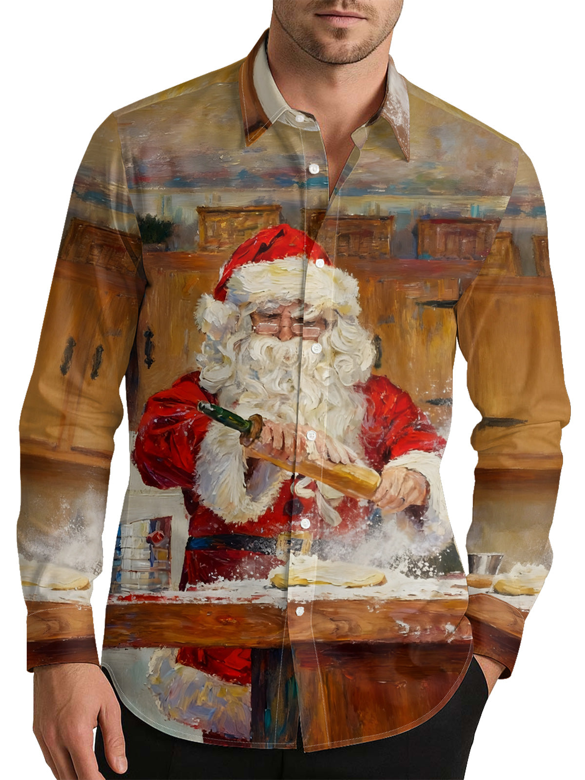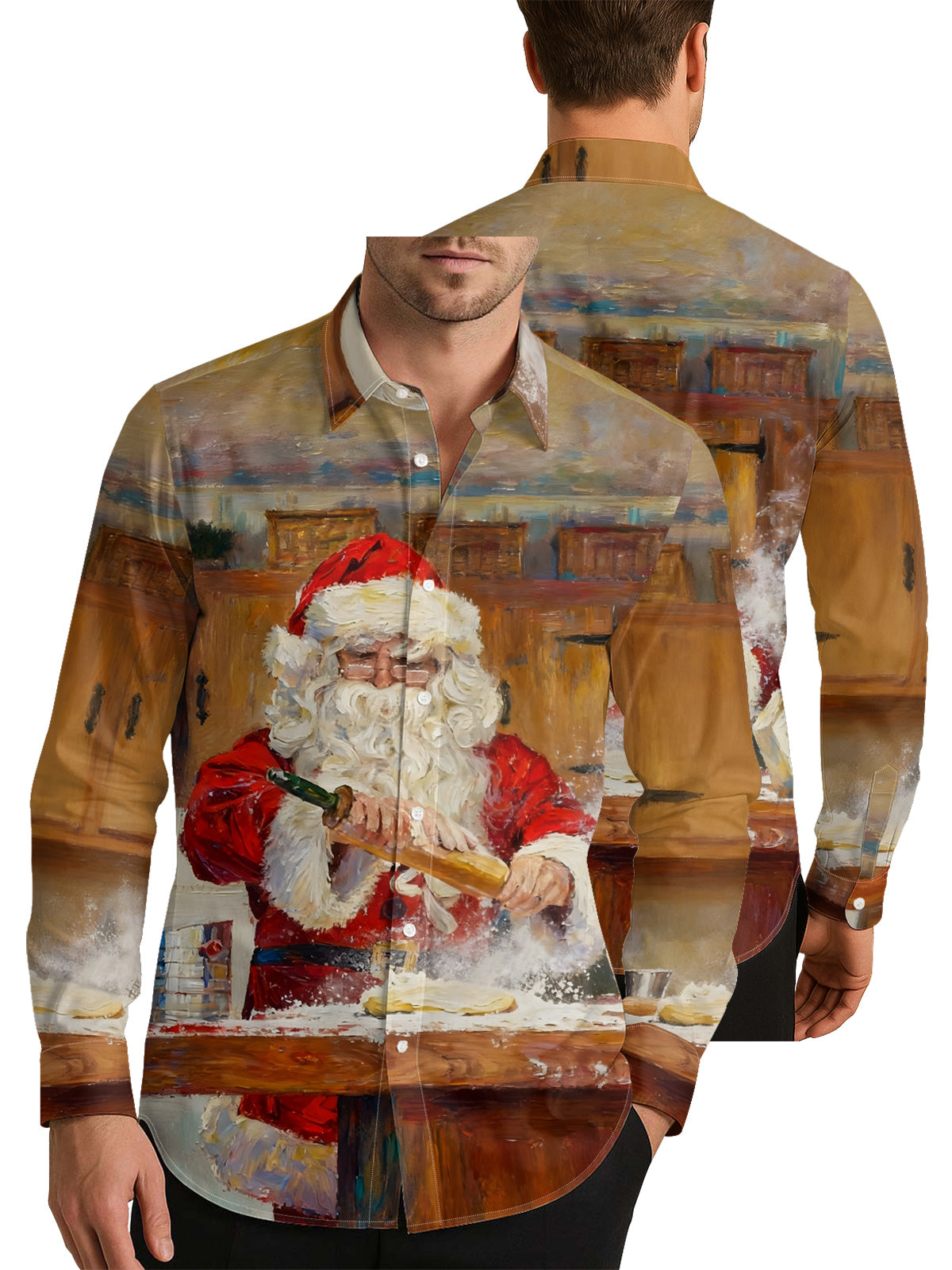 Cooking Santa Claus Men's Shirt Long Sleeve Button Up Shirt