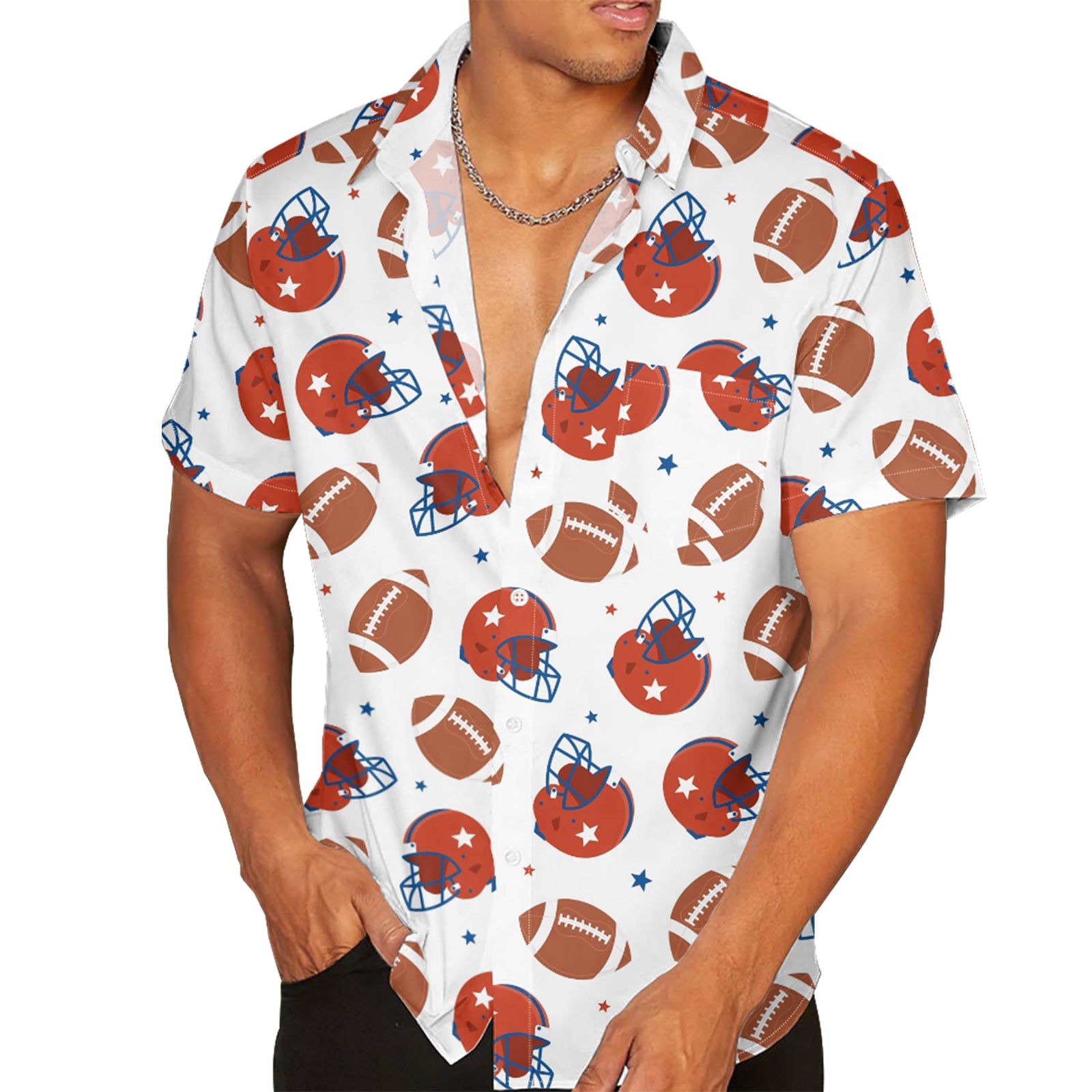 American Football Helmets Stars Men's Pocket Shirt Stretch Quick Dry Button Up Shirt