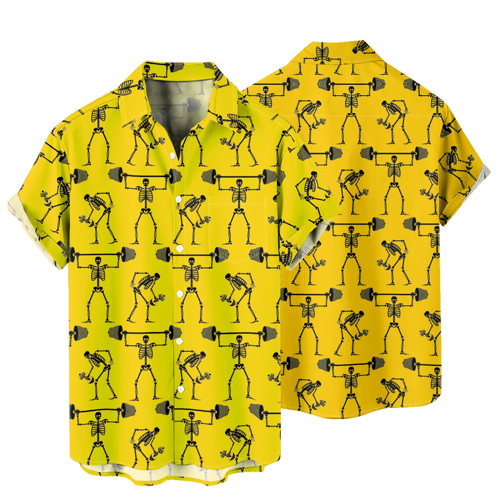 Fitness Skeletons Men's Pocket Shirt Stretch Quick Dry Button Up Shirt