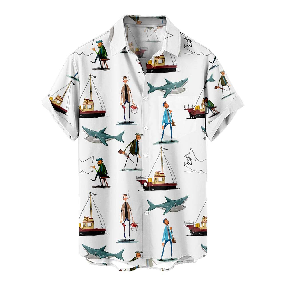 Shark And Boats Men's Pocket Shirt Stretch Quick Dry Button Up Shirt
