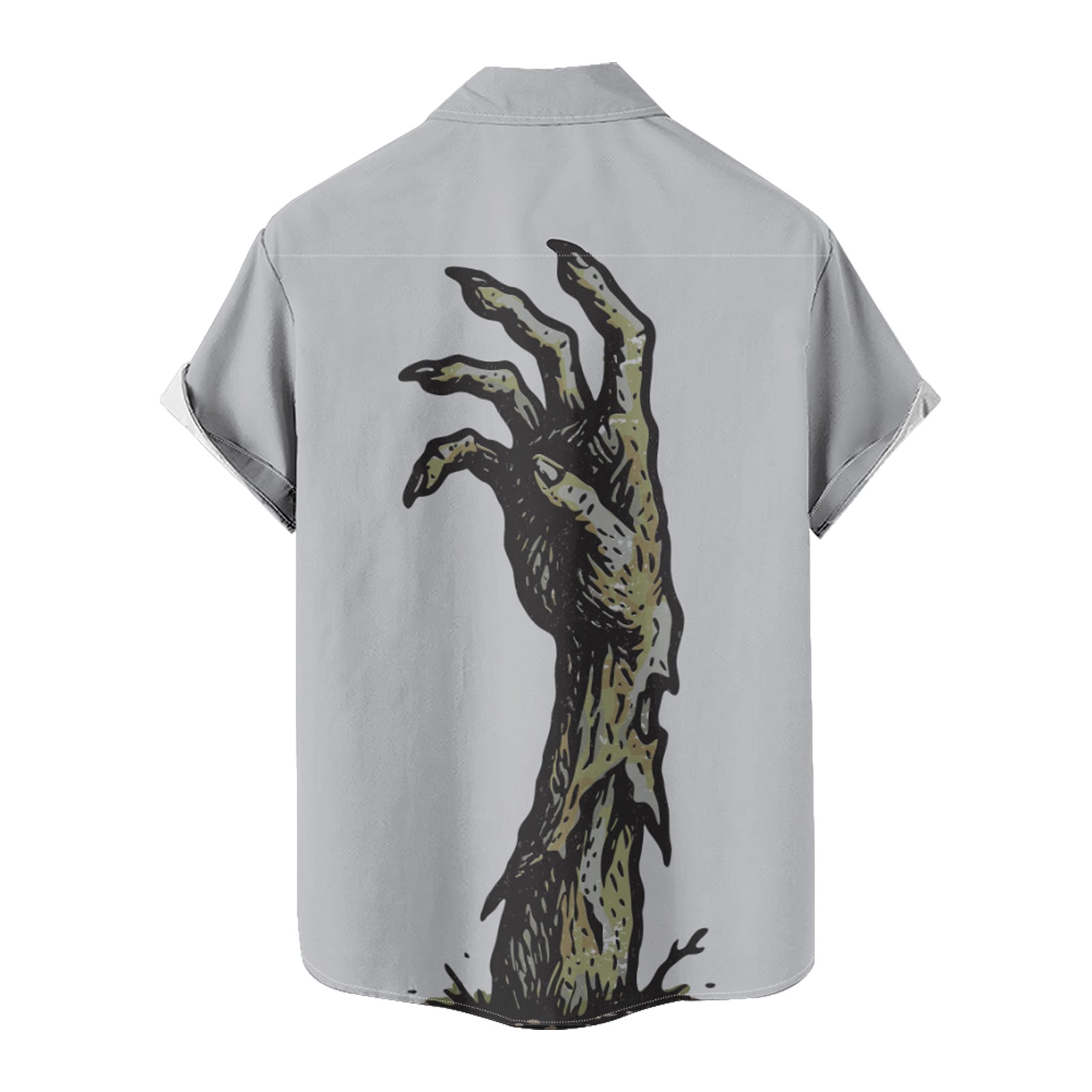 Creepy Halloween Zombie Hand Men's Pocket Shirt Stretch Quick Dry Button Up Shirt