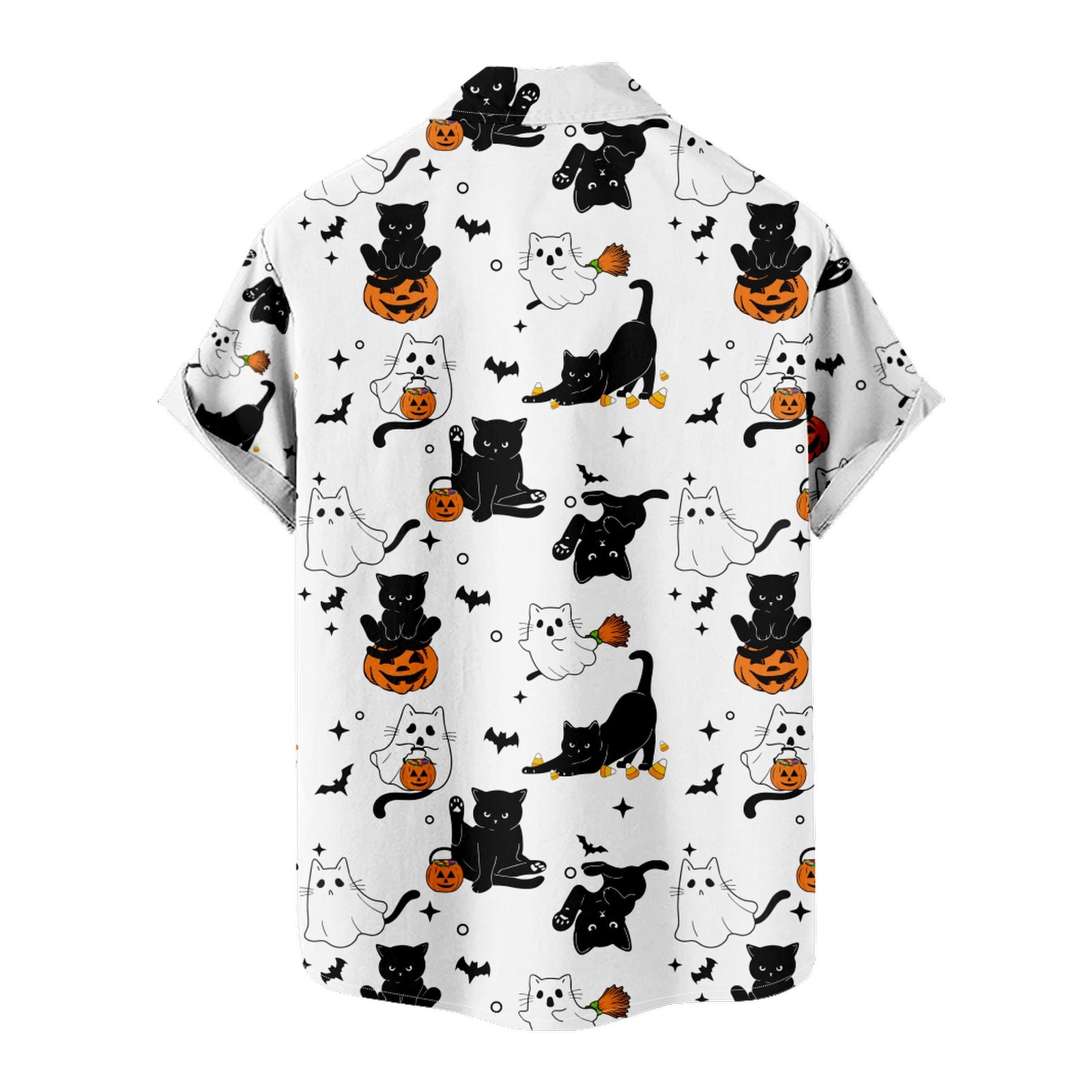 Cute Halloween Ghost Boo Cat Men's Pocket Shirt Stretch Quick Dry Button Up Shirt