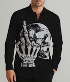 Edgy Skull with Skeleton Hand Men's Shirt Long Sleeve Button Up Shirt