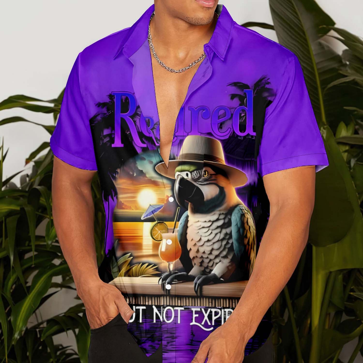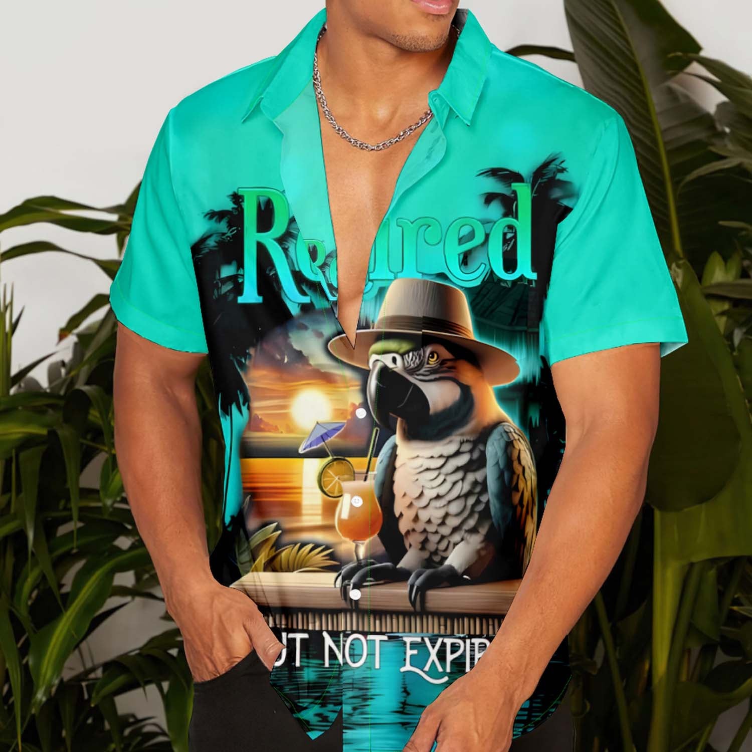 Beach Sunset Parrot Tropical Art Men's Pocket Shirt Stretch Quick Dry Button Up Shirt