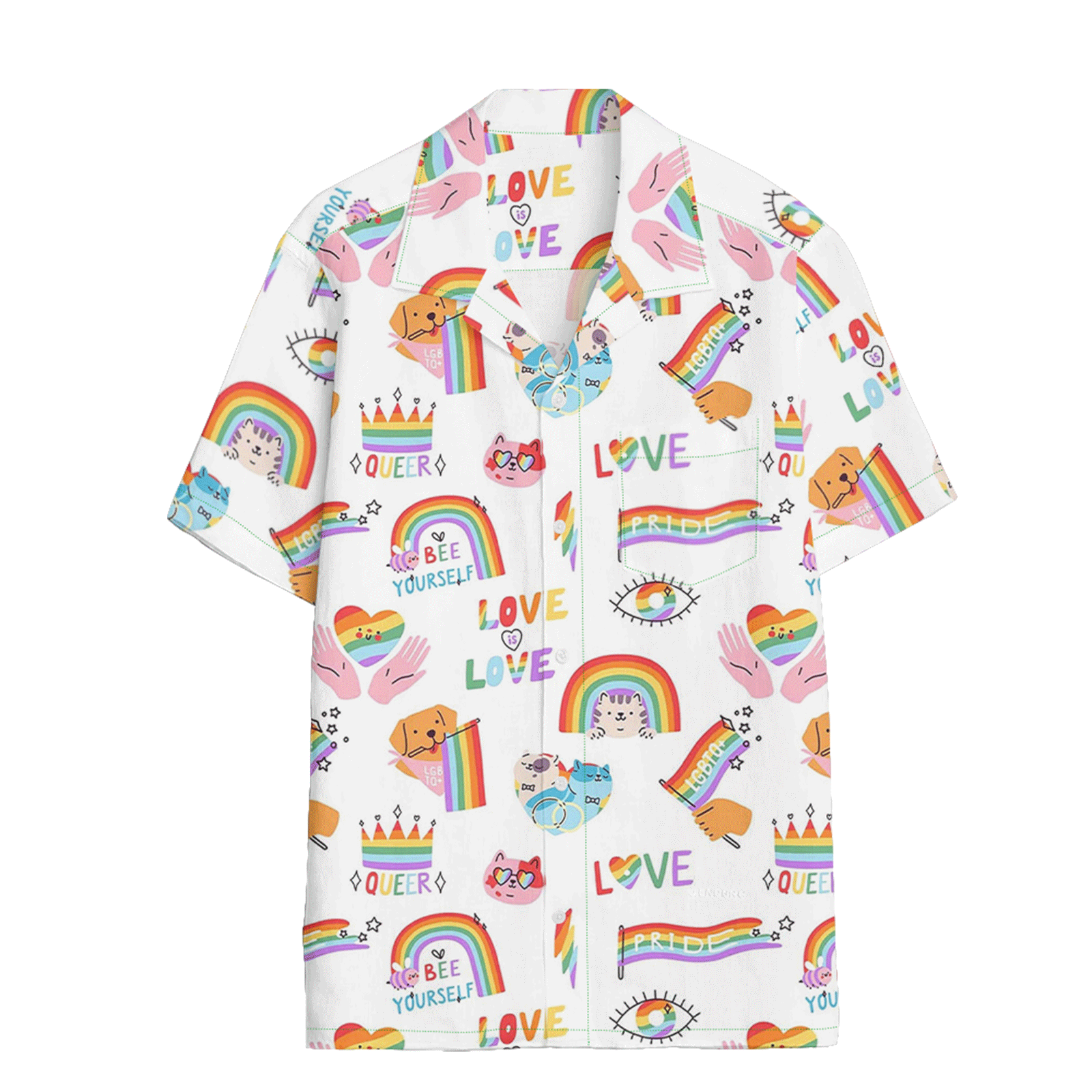 Rainbow Love Men's Cotton Hawaiian Shirt Pocket Camp Shirt